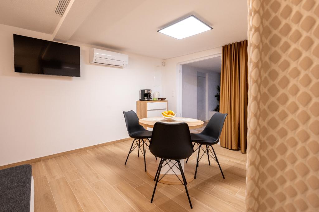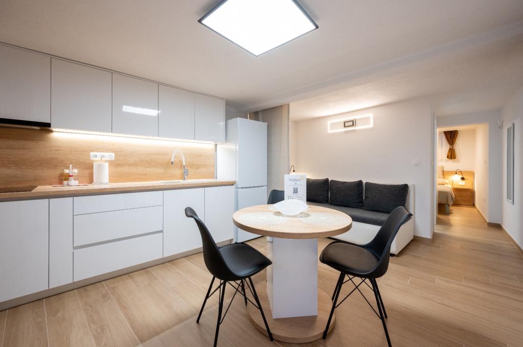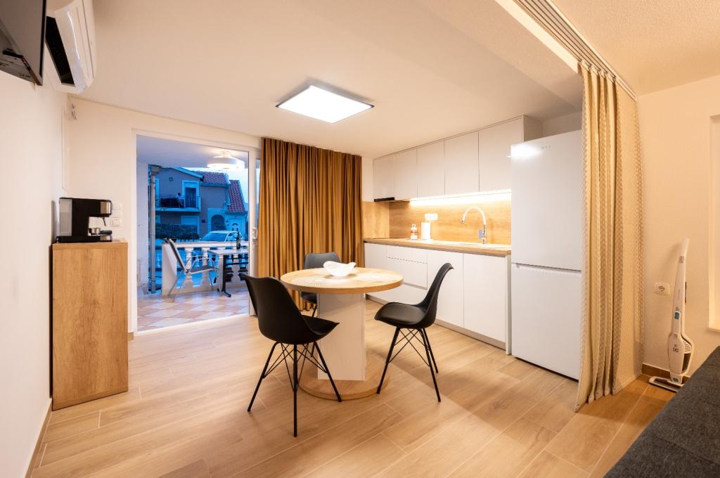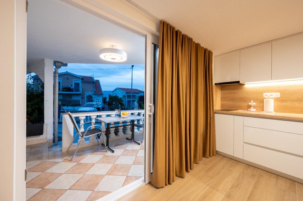 Zeer schoon en volledig uitgerust appartement... Van strijkijzer tot föhn. strijkplanken voor 2 tv's. airconditioning, serviesgoed. Koelkast. magnetron, vaatwasser. 2 verschillende koffiemachines. Koud water om je te verwelkomen in de koelkast, fruit op tafel. Rakija met de gastheer. Perfecte vakantie. De eigenaren waren erg aardig en behulpzaam. De vakantie hier was perfect. Dicht bij de zee, bij de winkel, bij het oude centrum van Trogir precies 3 km. Goede locatie. ik raad aan