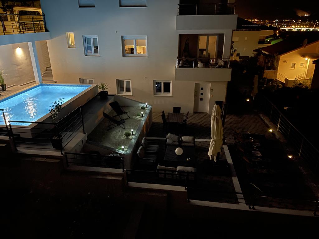 In augustus hadden we 14 mooie dagen doorgebracht met een familie van vrienden in deze geweldige faciliteit, dus we hadden beide appartementen en het zwembad helemaal voor onszelf. De appartementen zijn zeer modern en ook de buitenruimte is zeer hoogwaardig ingericht (meerdere zitmogelijkheden, voldoende ligstoelen, groot zonnescherm). Het contact met de verhuurder was vanaf het begin zeer hartelijk en de heer Pavlinusic was tijdens ons verblijf altijd telefonisch bereikbaar. Vanuit het complex heb je een geweldig uitzicht over het vasteland en de zee... je kunt zelfs de vakantievliegtuigen zien opstijgen en landen (laag vliegtuiglawaai, dat stoorde ons niet). De reis naar het vakantieoord was in het begin even wennen, want het was erg steil. Het strand is te voet in een paar minuten te bereiken en was perfect geschikt voor ons met kleine kinderen ... schoon water en niet overvol. Beste familie Pavlinusic, we voelden ons thuis bij je en zouden graag nog een keer komen!