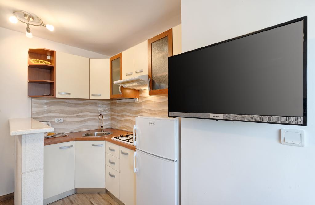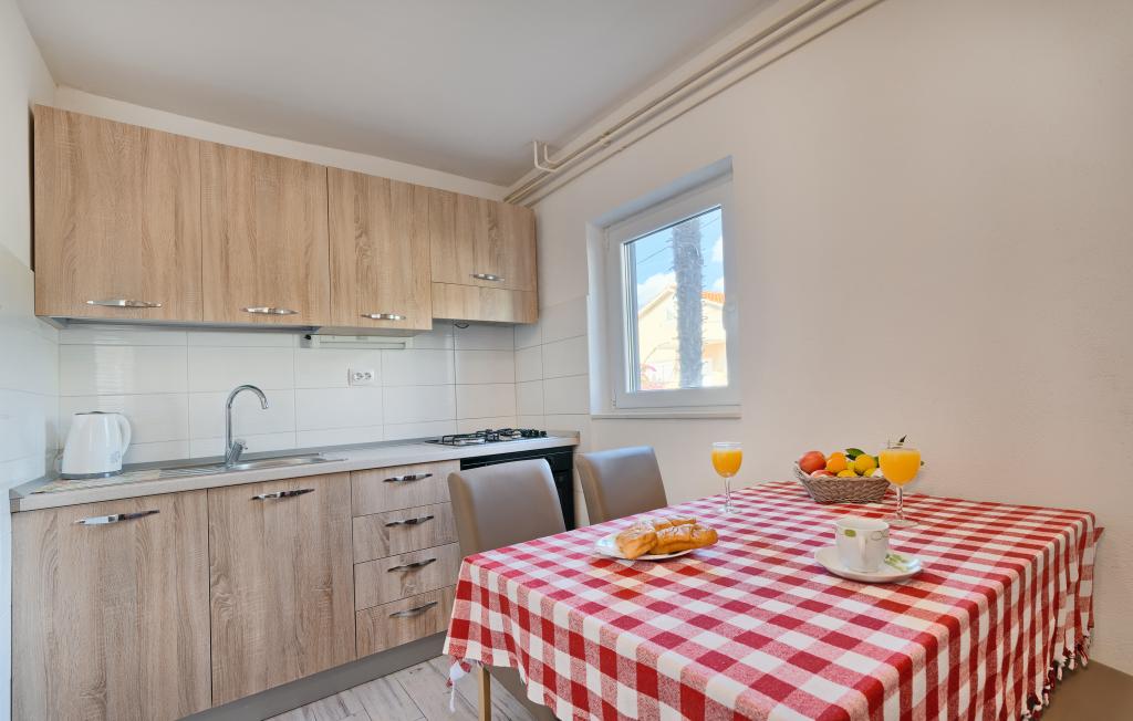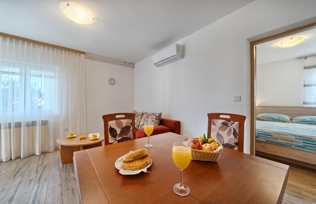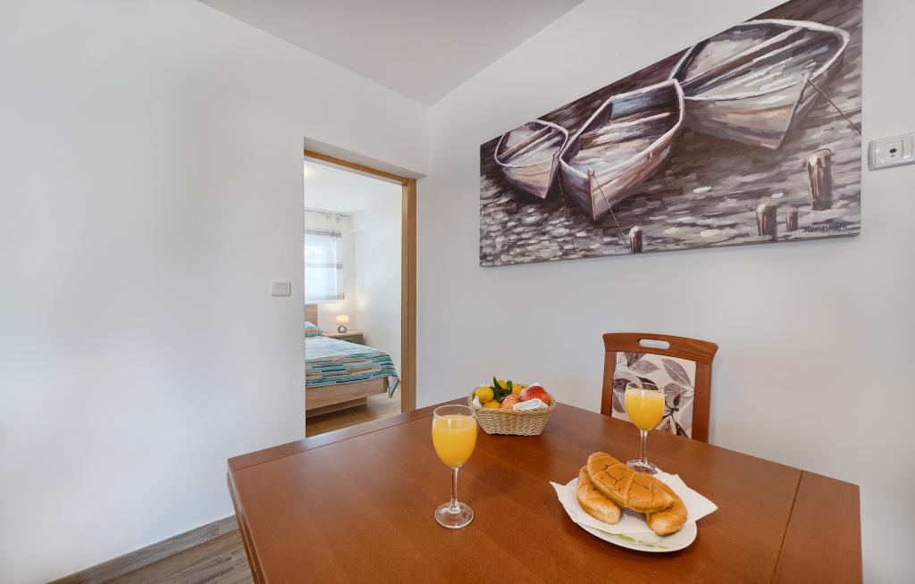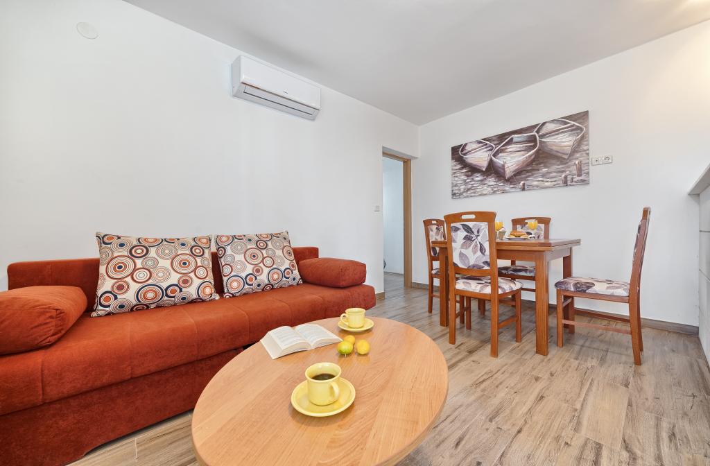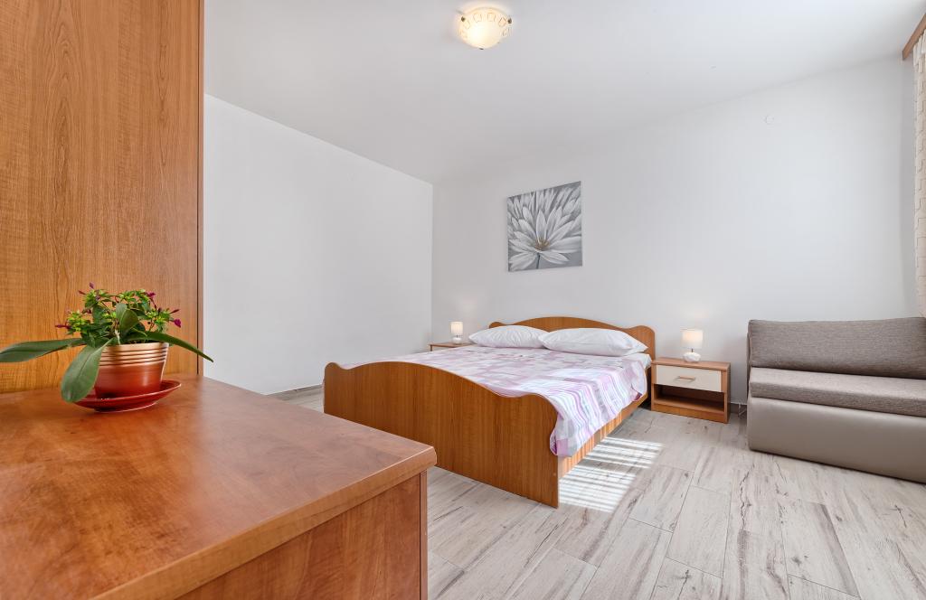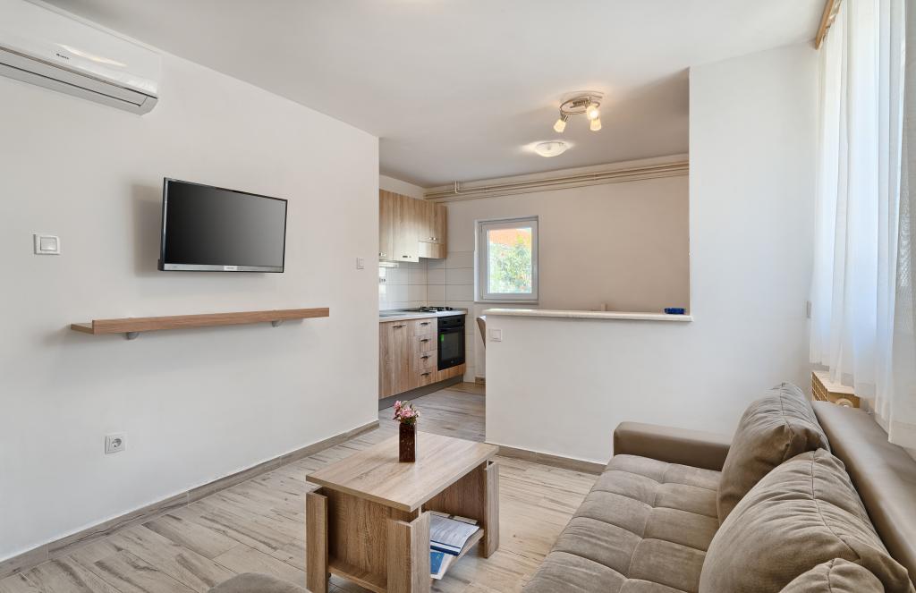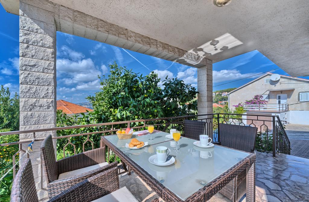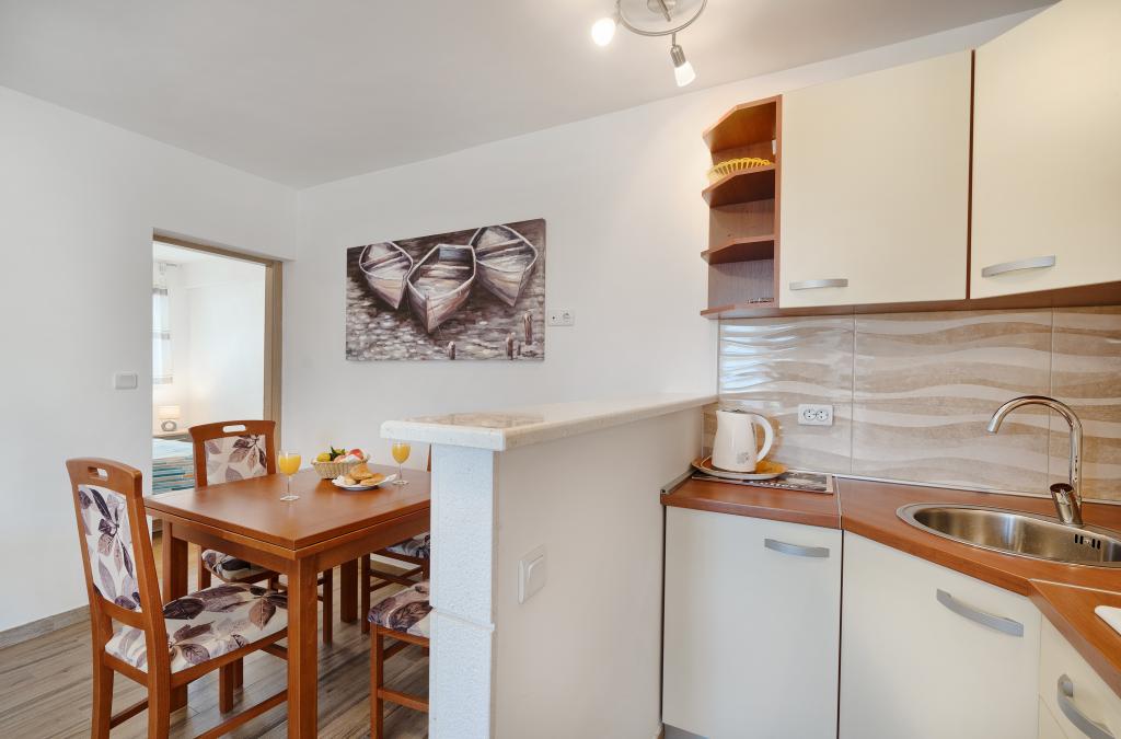Appartementen Bareta bevinden zich op het eiland Ciovo, gemeente Trogir. Ze bevinden zich op een geweldige locatie voor degenen die willen genieten van de zon en de zee, evenals voor degenen die kennis willen maken met de historische en natuurlijke schoonheden van Midden-Dalmatië. De oude binnenstad van Trogir, die op de werelderfgoedlijst van UNESCO staat, bevindt zich op slechts 1000 meter afstand, terwijl Split (paleis van Diocletianus, veerboten voor eilanden), Omiš, Cetina (raften, canyoning, klimmen), de watervallen van Krka en Sibenik op minder dan 50 km afstand liggen. De luchthaven van Split ligt op slechts 5 km afstand. De appartementen bevinden zich op de begane grond van een familiehuis, omgeven door tuin en groen. Elk appartement heeft een eigen ingang en een groot terras met eettafel, parkeerplaats en barbecue en buitendouche zijn mogelijk. De appartementen bestaan uit een woonkamer verbonden met de keuken, een slaapkamer (bed 2 1, 2 2), mogelijk twee volwassenen met twee kinderen, een badkamer met toilet. De appartementen zijn volledig uitgerust met alles wat u nodig heeft voor een comfortabel verblijf / serviesgoed, beddengoed, enz.) Tr