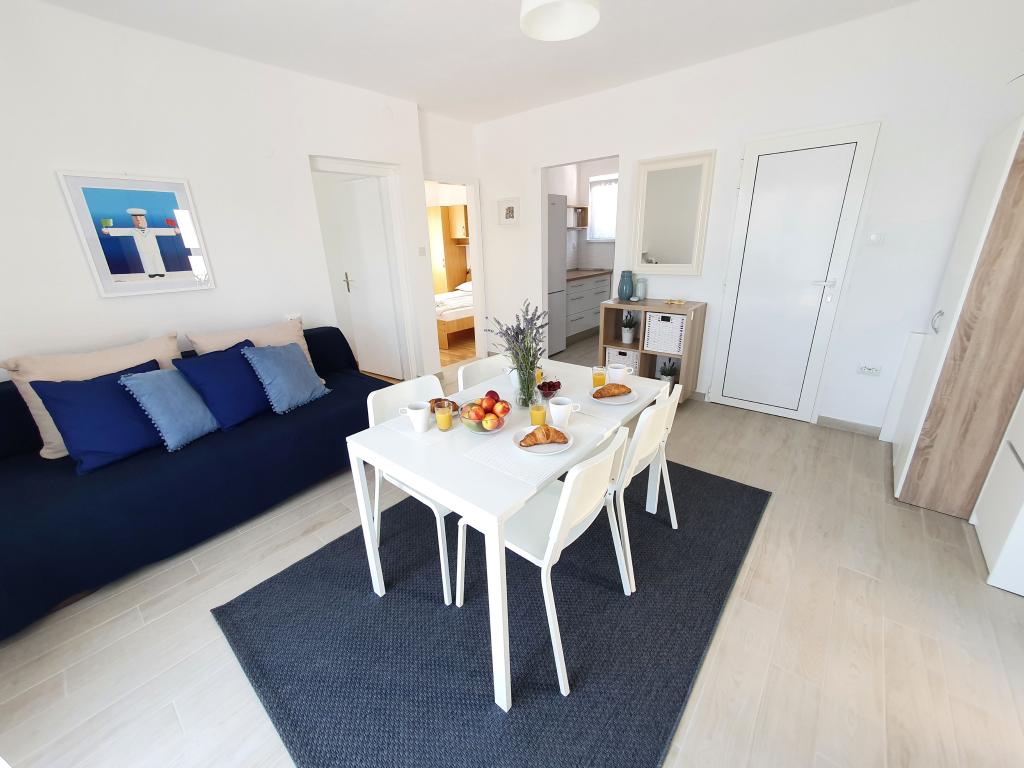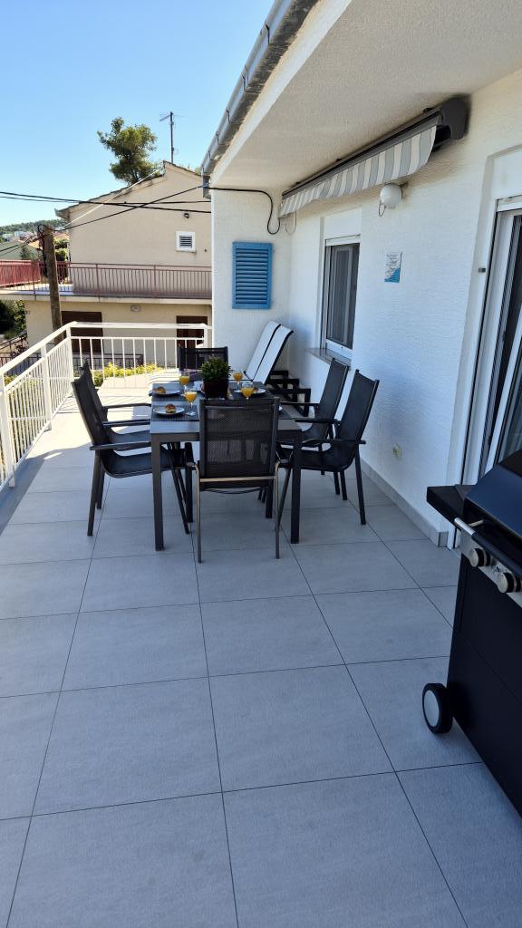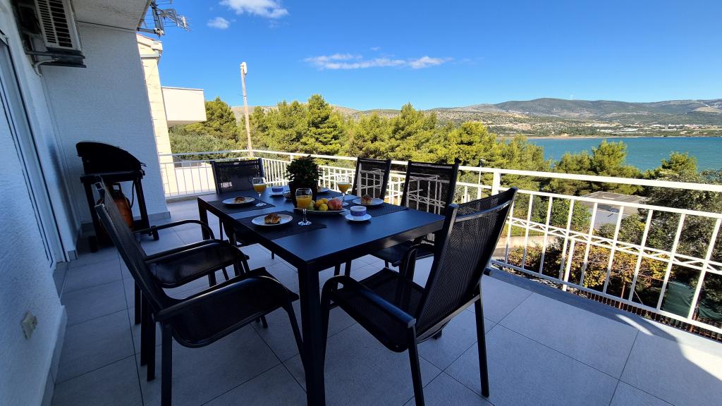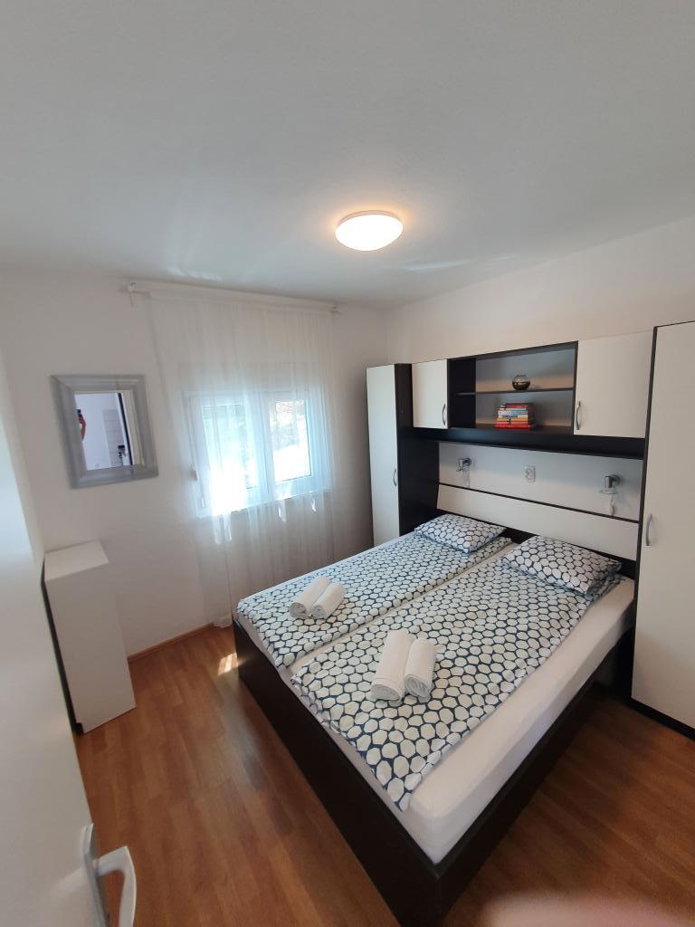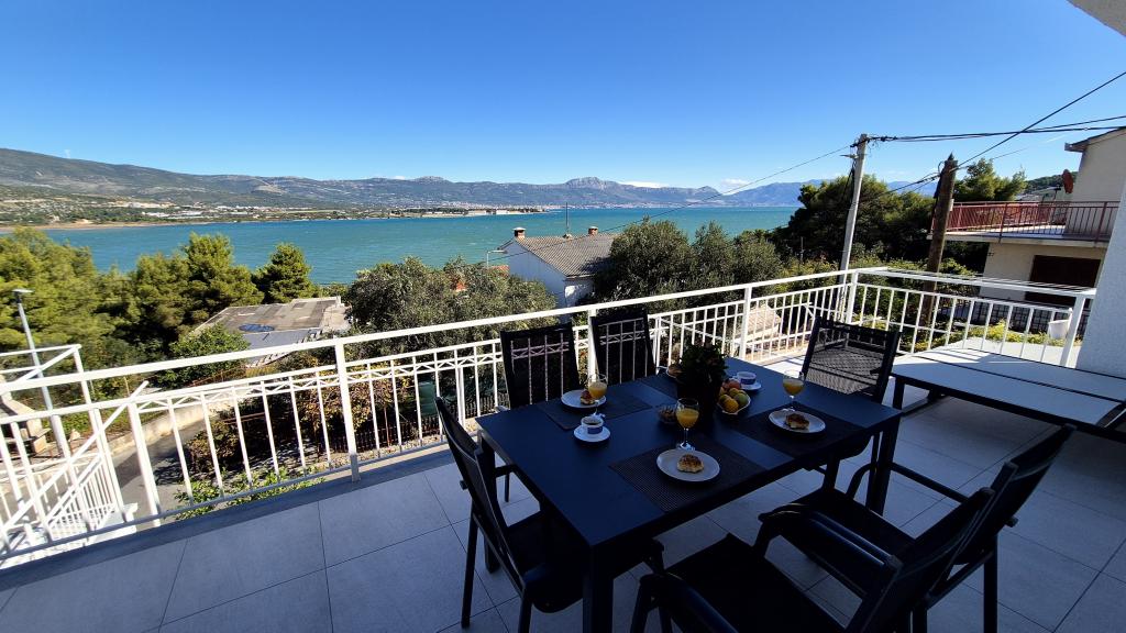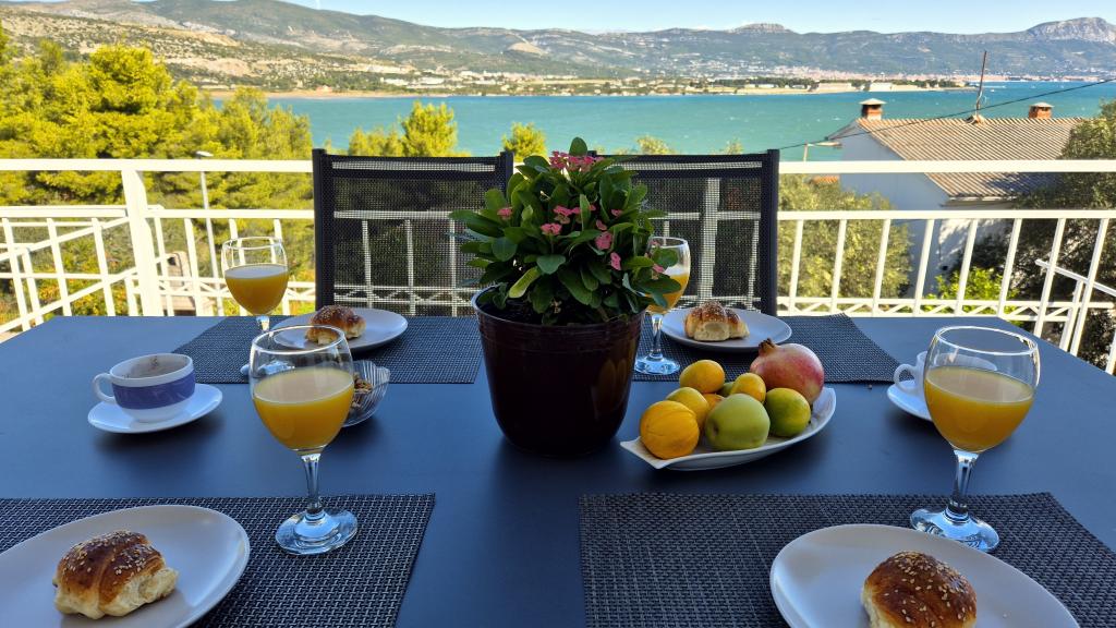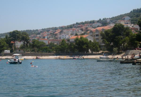 Appartementen MIRTA zijn gelegen op het noordelijke deel van het eiland Čiovo, 1,8 kilometer ten oosten van de brug die het oude centrum van Trogir met Čiovo verbindt. Ze bevinden zich op een rustige plek, vlakbij een dennenbos en de zee. Het kiezelstrand ligt aan de voet van het appartement. Appartement 1 bevindt zich op de eerste verdieping van een huis omgeven door groen. Het bestaat uit twee slaapkamers, woonkamer met eetkamer, keuken en badkamer. Het is uitgerust voor 4-6 personen. De slaapkamers hebben een tweepersoonsbed en in de woonkamer staat een extra bed voor twee personen. Appartement 2 bevindt zich op de begane grond. Het bestaat uit twee slaapkamers (tweepersoonsbedden), woonkamer met eetkamer en keuken, en badkamer. De appartementen hebben een eigen parkeerplaats, een aparte ingang en een gasbarbecue. Beide appartementen hebben een terras met prachtig uitzicht op zee en tuinmeubilair. Terrassen zijn perfect om de hele dag te genieten en te socialiseren in de frisse lucht.