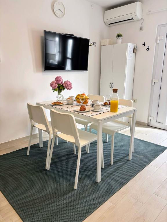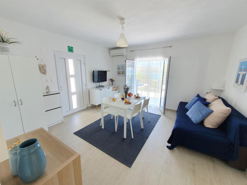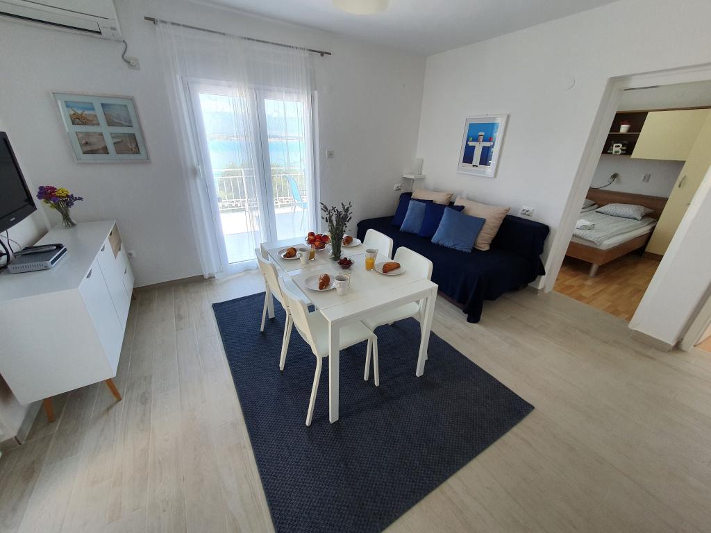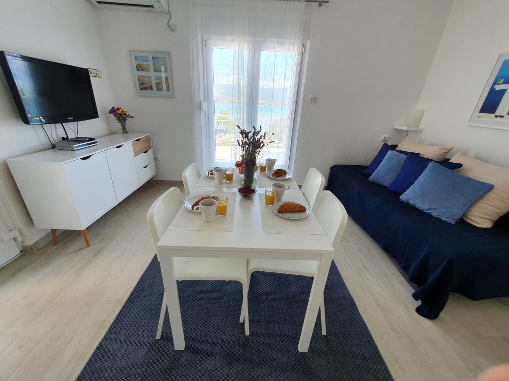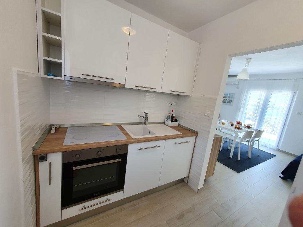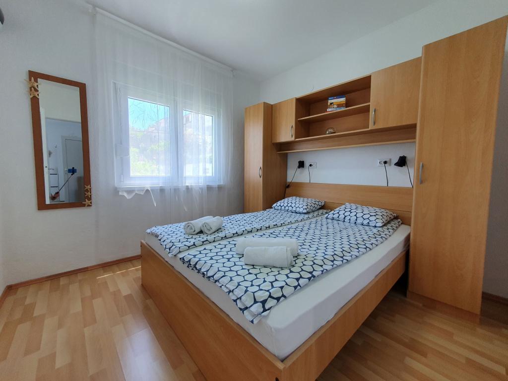 Appartementen MIRTA zijn gelegen op het noordelijke deel van het eiland Čiovo, 1,8 kilometer ten oosten van de brug die het oude centrum van Trogir met Čiovo verbindt. Ze bevinden zich op een rustige plek, vlakbij een dennenbos en de zee. Het kiezelstrand ligt aan de voet van het appartement. Appartement 1 bevindt zich op de eerste verdieping van een huis omgeven door groen. Het bestaat uit twee slaapkamers, woonkamer met eetkamer, keuken en badkamer. Het is uitgerust voor 4-6 personen. De slaapkamers hebben een tweepersoonsbed en in de woonkamer staat een extra bed voor twee personen. Appartement 2 bevindt zich op de begane grond. Het bestaat uit twee slaapkamers (tweepersoonsbedden), woonkamer met eetkamer en keuken, en badkamer. De appartementen hebben een eigen parkeerplaats, een aparte ingang en een gasbarbecue. Beide appartementen hebben een terras met prachtig uitzicht op zee en tuinmeubilair. Terrassen zijn perfect om de hele dag te genieten en te socialiseren in de frisse lucht.