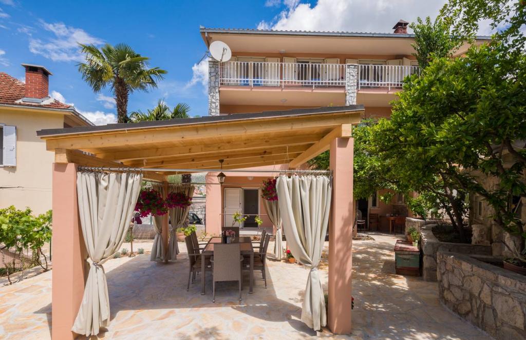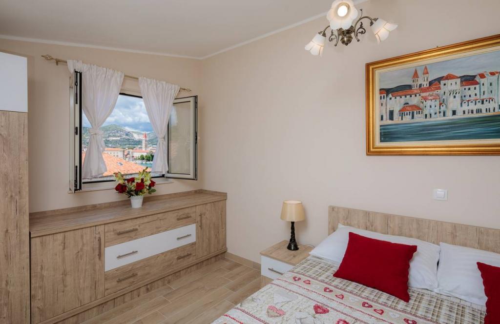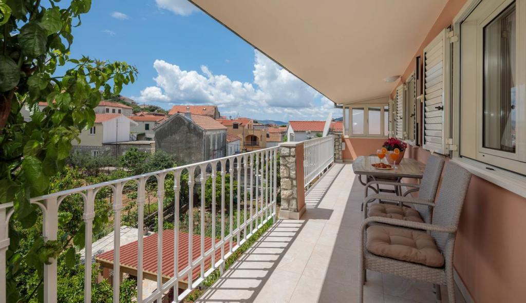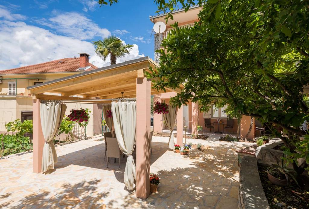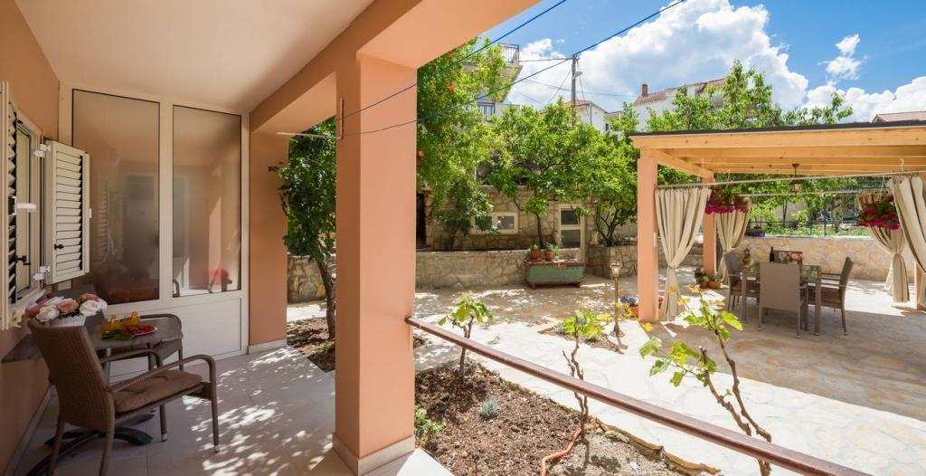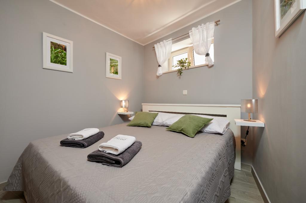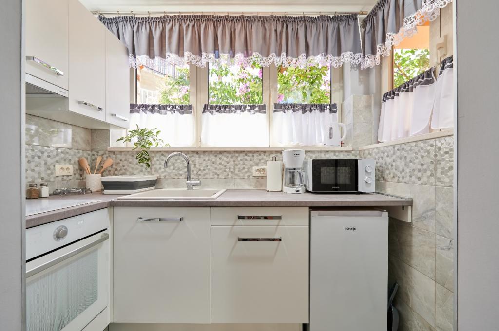 Apartments Oaza ligt aan de noordkant van het schiereiland Čiova, dat door 3 bruggen verbonden is met de historische kern van Trogir en het vasteland. Ons huis ligt op slechts 5 minuten lopen van het hart van Trogir. De goede locatie van het appartement biedt snelle en gemakkelijke toegang tot het stadscentrum en tot de stranden die zich over het hele schiereiland uitstrekken. In de directe omgeving van onze appartementen zijn er winkels, een bakker, een postkantoor, een apotheek, restaurants met Dalmatische specialiteiten, cafés en een busstation. Appartement 2+2 (voor max. 4 personen) Gelegen op de tweede verdieping. Het appartement heeft een volledig uitgeruste keuken die verbonden is met de woonkamer, een badkamer met douche en twee tweepersoonsslaapkamers - één met een tweepersoonsbed en de andere met twee eenpersoonsbedden. Het appartement heeft 2 balkons, het zuidelijke met uitzicht op de groene ondergrond van het schiereiland Čiovo en de tuin, en het noordelijke met uitzicht op de zee, Trogir en de berg Kozjak. Studio 3 (voor max. 3 personen) Deze bevindt zich op de begane grond van ons familiehuis. Het appartement beschikt over een volledig uitgeruste keuken en badkamer