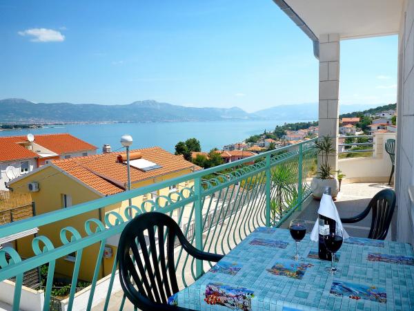 Loven! Regeling en reservering van accommodatie ging snel. Vriendelijke eigenaren, we werden na de reis in de koelkast begroet met een verfrissend drankje wat welkom was na de verkeersopstopping. Het appartement is zeer schoon, netjes en mooi ingericht. Het uitzicht vanaf het balkon beviel ons. Rustige en vredige omgeving, parking voorzien. We hebben een gemakkelijke wandeling gemaakt om Trogir te bezoeken. De prijzen op het eiland zijn echt prima, bv 2 grote koffies betaalden we 12 kn. De stranden zijn dichtbij. En ja, uiteindelijk kregen we een kleine attentie en dat is geweldig. We waren echt opgewonden. Een echt voorbeeld van hoe toerisme eruit zou moeten zien.