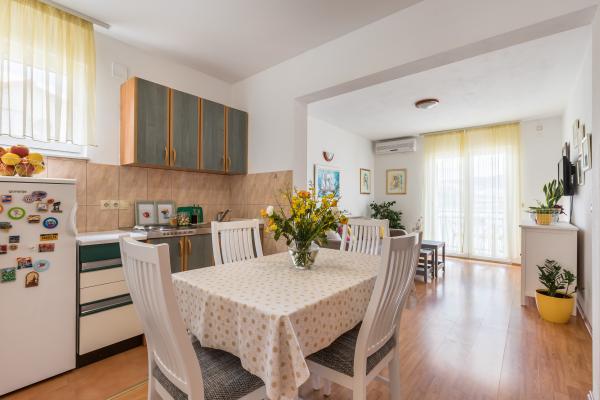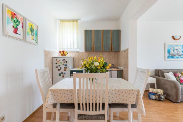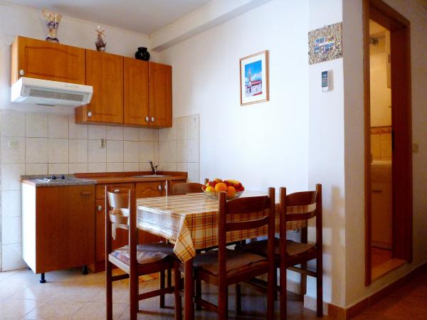 Het studio appartement is netjes ingericht, we werden door netjes en schoon begroet. Het nadeel is wie er met een klein kind komt zodra je het appartement verlaat is de weg, en het terras is boven. We hebben het terras niet eens gebruikt omdat je geen privacy hebt. De plaats is erg mooi, het centrum van Trogir is dichtbij, je kunt lopen (ongeveer 2 km afstand van het appartement). De eerste dagen hadden we last van het lawaai van het vliegtuig, totdat we eraan gewend raakten omdat het vliegveld van Split vlakbij ligt. Het strand is heel dichtbij, je kunt kiezen uit beton tot kiezel. Met betrekking tot de accommodatie kwamen de gastheren niet goed uit, ze brachten ons in rekening voor de accommodatie van een tweejarig kind. Wees voorzichtig bij het onderhandelen en met wie u onderhandelt over de prijs.