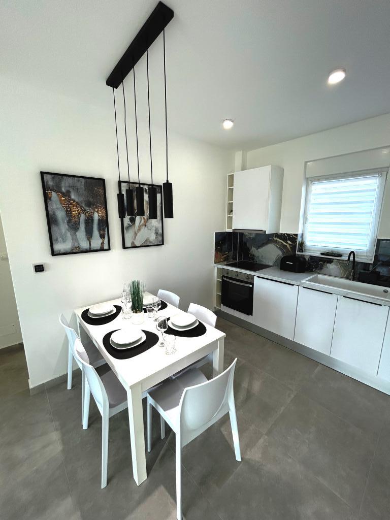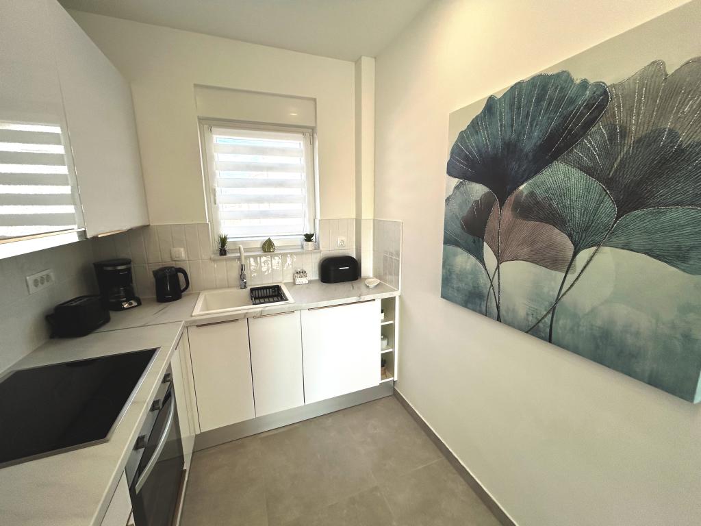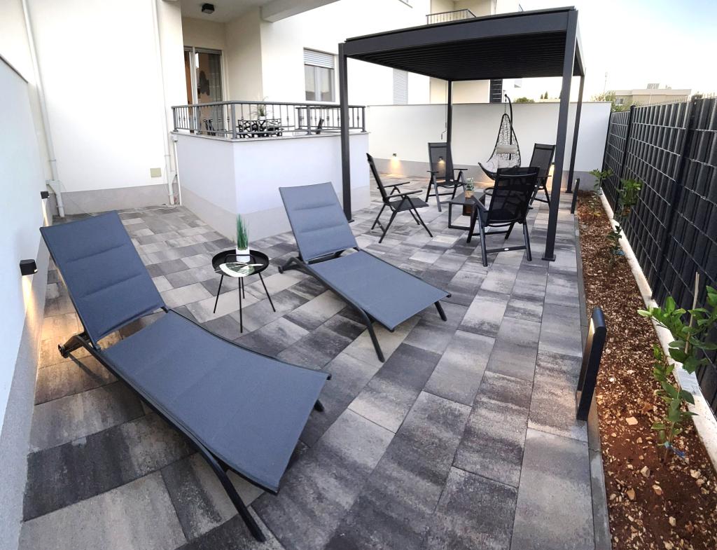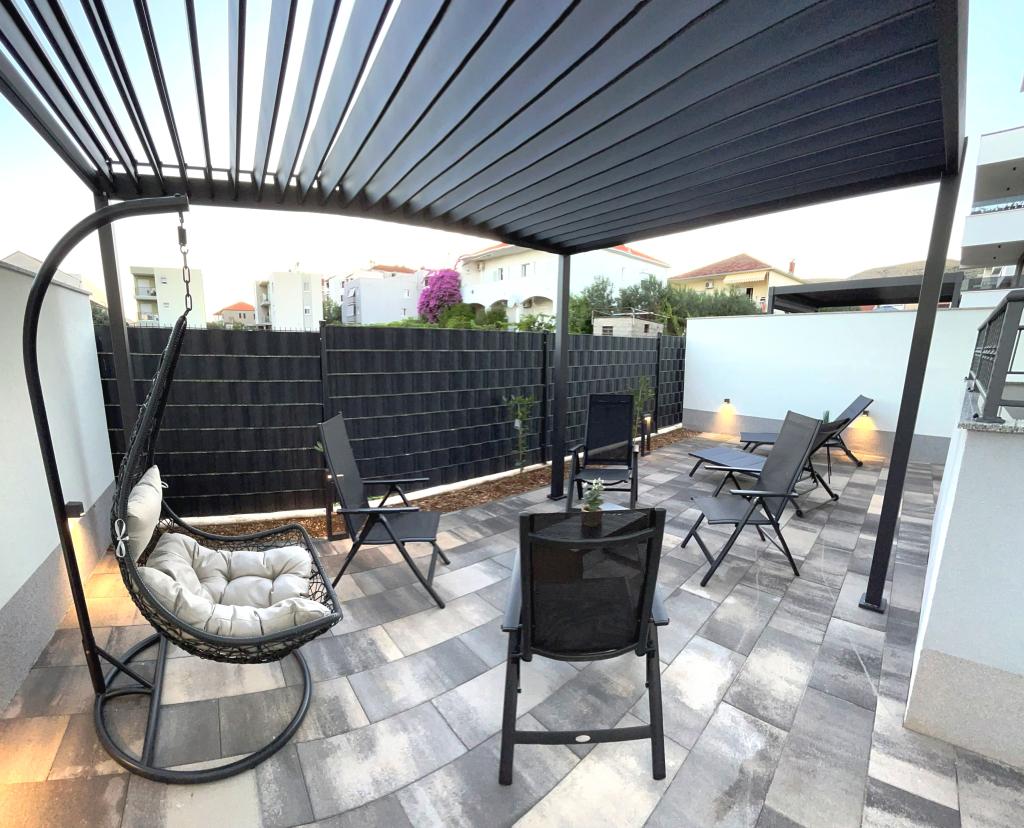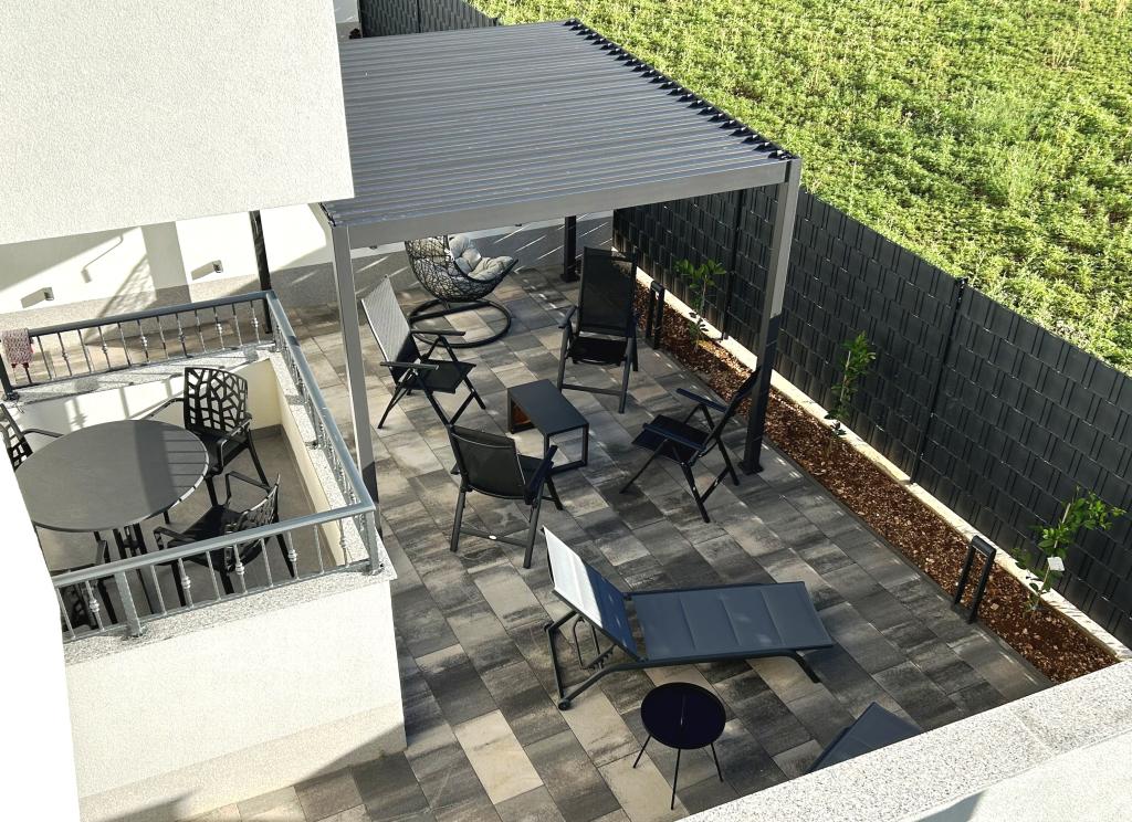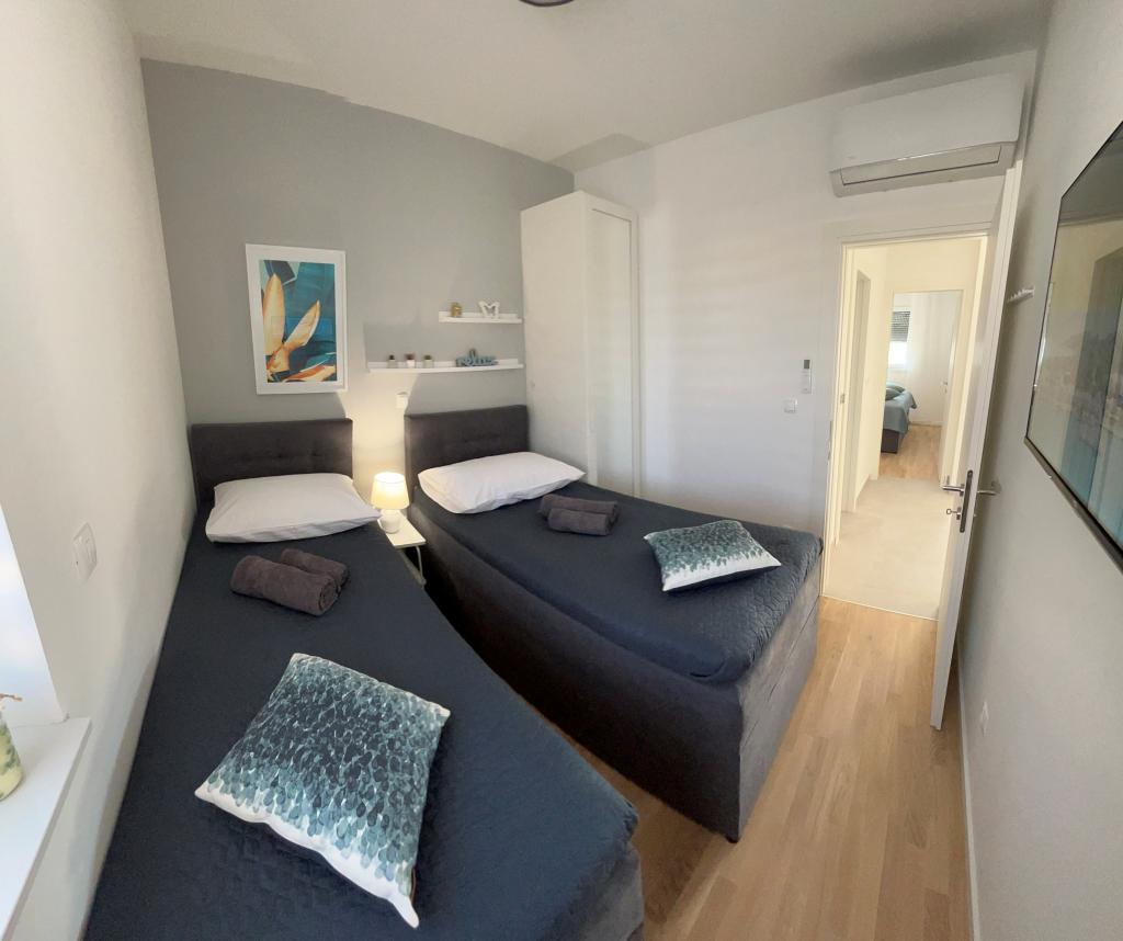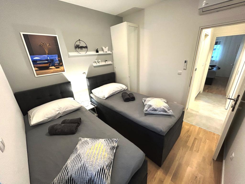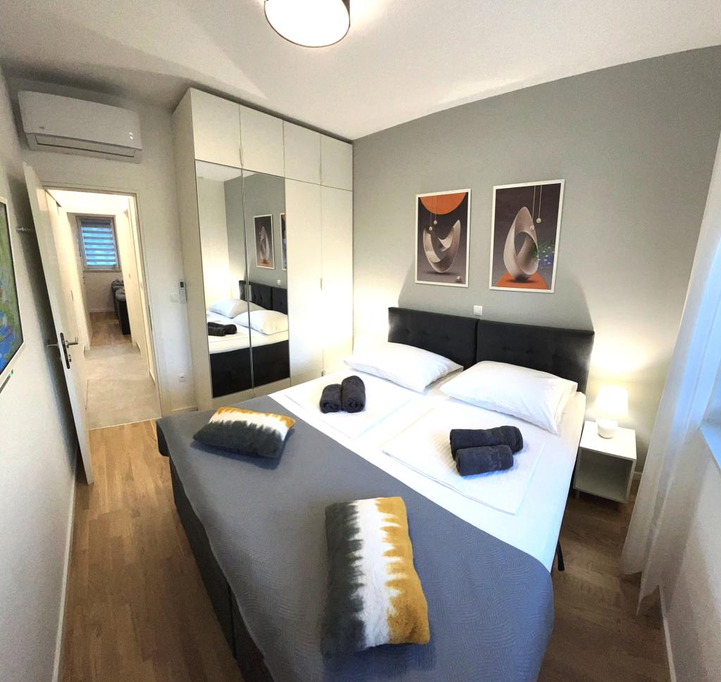Town Trogir Apartments liggen op het vasteland van Trogir, op een toplocatie, op slechts 400 meter van het oude stadscentrum en 1000 meter van het nieuwe stadsstrand. Het strand is te bereiken via een promenade langs de zee. Alle belangrijke voorzieningen bevinden zich op loopafstand, op 5 tot 10 minuten lopen. Town Trogir Apartments is nieuw en gelegen in een klein woongebouw met 6 appartementen. De appartementen hebben een oppervlakte van circa 60 m². De appartementen bevinden zich op de begane grond, de eerste verdieping en de tweede verdieping. De appartementen zijn modern ingericht en van alle gemakken voorzien. Elk appartement beschikt over 2 slaapkamers, een woonkamer met eethoek, een volledig ingerichte keuken, een badkamer en een ruim terras met tuinmeubilair op de begane grond. De woonkamer en slaapkamers hebben aparte airconditioning. Er is gratis parkeergelegenheid voor het gebouw. Bedlinnen en handdoeken zijn inbegrepen. WiFi is gratis. De toeristenbelasting is bij de prijs inbegrepen.