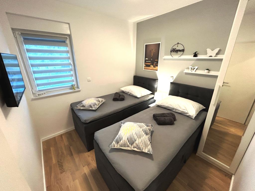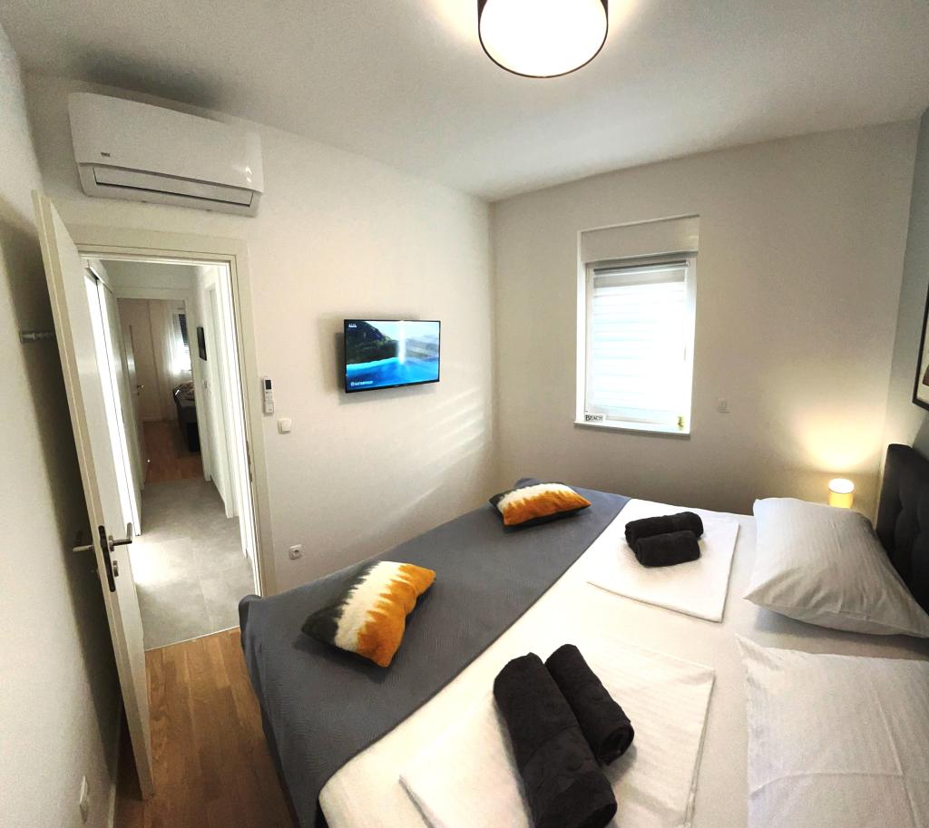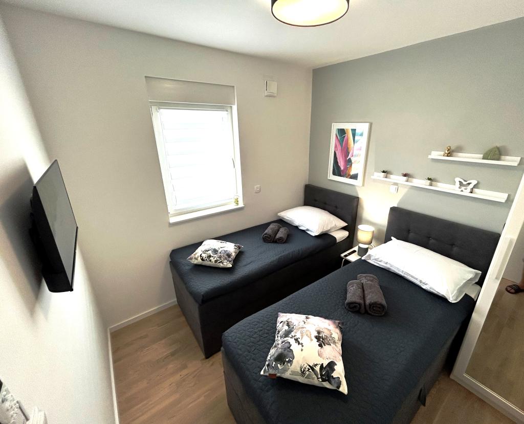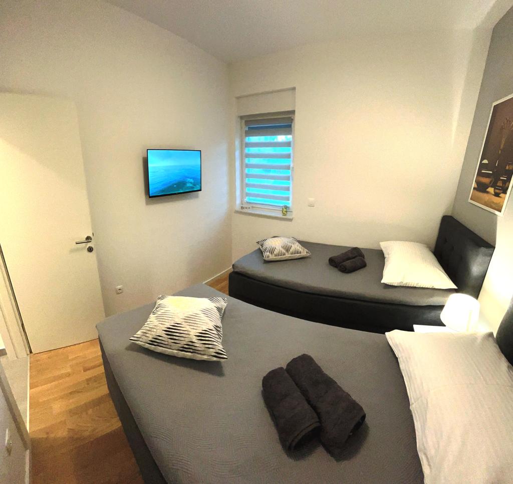 Hartelijk dank dat we bij jullie een accommodatie mochten boeken. Het appartement is erg mooi en schoon. Jullie hebben aan alles gedacht. We kwamen aan met een baby van 5 maanden, een kinderbedje, een speelkleed, ballen en een kinderstoel. We hadden alles. Marija was erg aardig en behulpzaam. We kwamen aan in een zeer goed uitgerust, schoon appartement met heerlijke koude drankjes. We kunnen het iedereen aanraden. Ze zijn erg vriendelijk. Het is dichtbij. De markt, de winkels, de oude stad. We zijn er dol op.