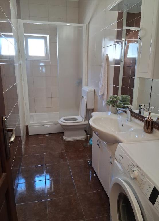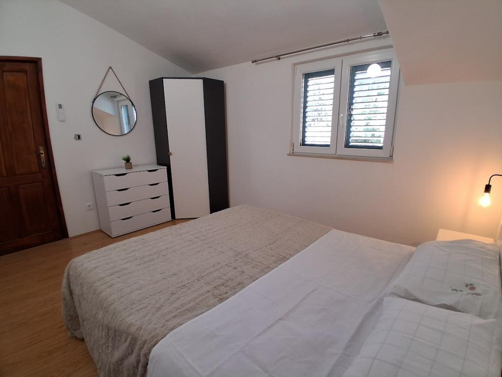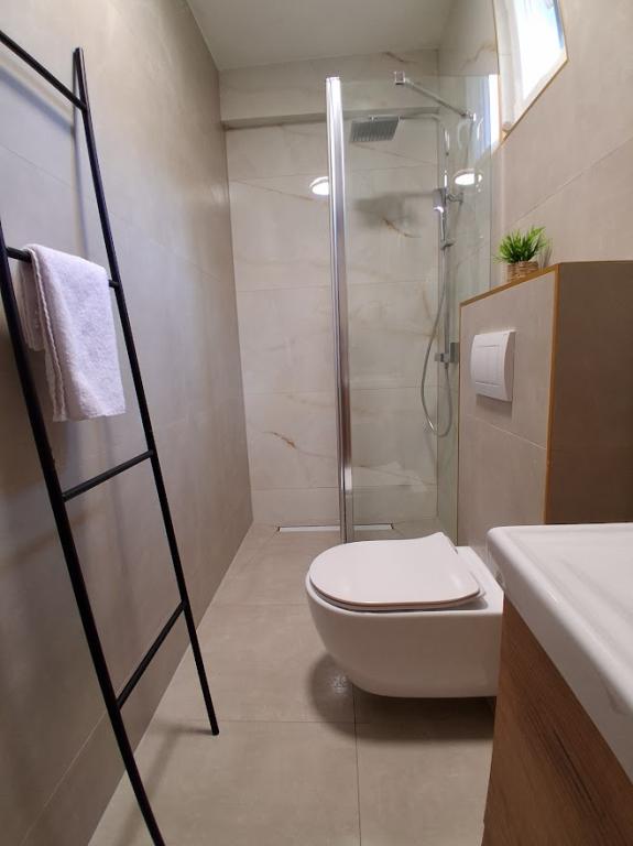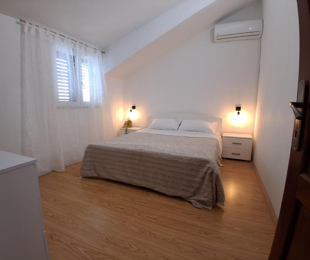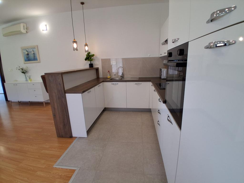 Volledig en modern ingericht, ruim appartement met twee slaapkamers, zeezicht en een groot overdekt terras - op de gehele verdieping en op de begane grond een appartement met één slaapkamer en een prachtig terras. Het appartement met twee slaapkamers bestaat uit twee slaapkamers met een tweepersoonsbed, een badkamer, een ruime keuken en een woonkamer met een slaapbank die indien nodig kan worden omgebouwd tot een bed. Het appartement met één slaapkamer bestaat uit een kamer met een tweepersoonsbed plus een extra bed voor een derde persoon. Er is ook de mogelijkheid om een slaapbank in de woonkamer te plaatsen. Op 5-7 minuten afstand van het prachtige strand en de strandbar; de afstand tot het centrum bedraagt ongeveer 10 minuten lopen. De prijs is inclusief parkeren, wifi, airconditioning in elke kamer, handdoeken, wasmachine en vaatwasser, toilet, waterkoker, koffiezetapparaat (appartement met twee slaapkamers), föhn, strijkijzer en strijkplank (appartement met twee slaapkamers).