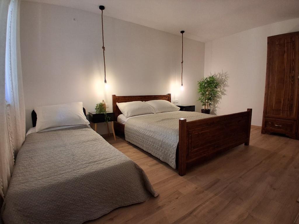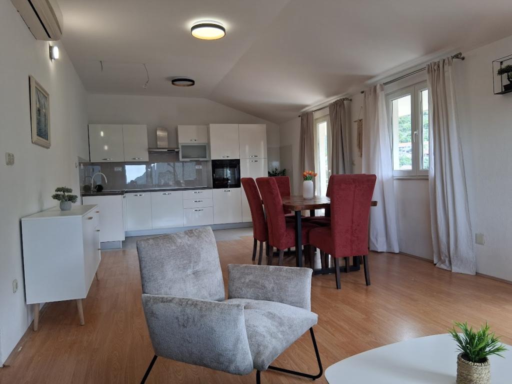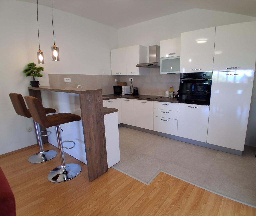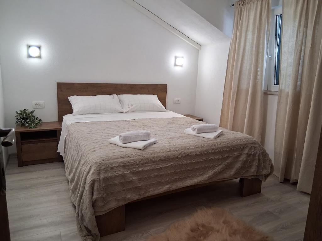 Volledig en modern ingericht, ruim appartement met twee slaapkamers, zeezicht en een groot overdekt terras - op de gehele verdieping en op de begane grond een appartement met één slaapkamer en een prachtig terras. Het appartement met twee slaapkamers bestaat uit twee slaapkamers met een tweepersoonsbed, een badkamer, een ruime keuken en een woonkamer met een slaapbank die indien nodig kan worden omgebouwd tot een bed. Het appartement met één slaapkamer bestaat uit een kamer met een tweepersoonsbed plus een extra bed voor een derde persoon. Er is ook de mogelijkheid om een slaapbank in de woonkamer te plaatsen. Op 5-7 minuten afstand van het prachtige strand en de strandbar; de afstand tot het centrum bedraagt ongeveer 10 minuten lopen. De prijs is inclusief parkeren, wifi, airconditioning in elke kamer, handdoeken, wasmachine en vaatwasser, toilet, waterkoker, koffiezetapparaat (appartement met twee slaapkamers), föhn, strijkijzer en strijkplank (appartement met twee slaapkamers).