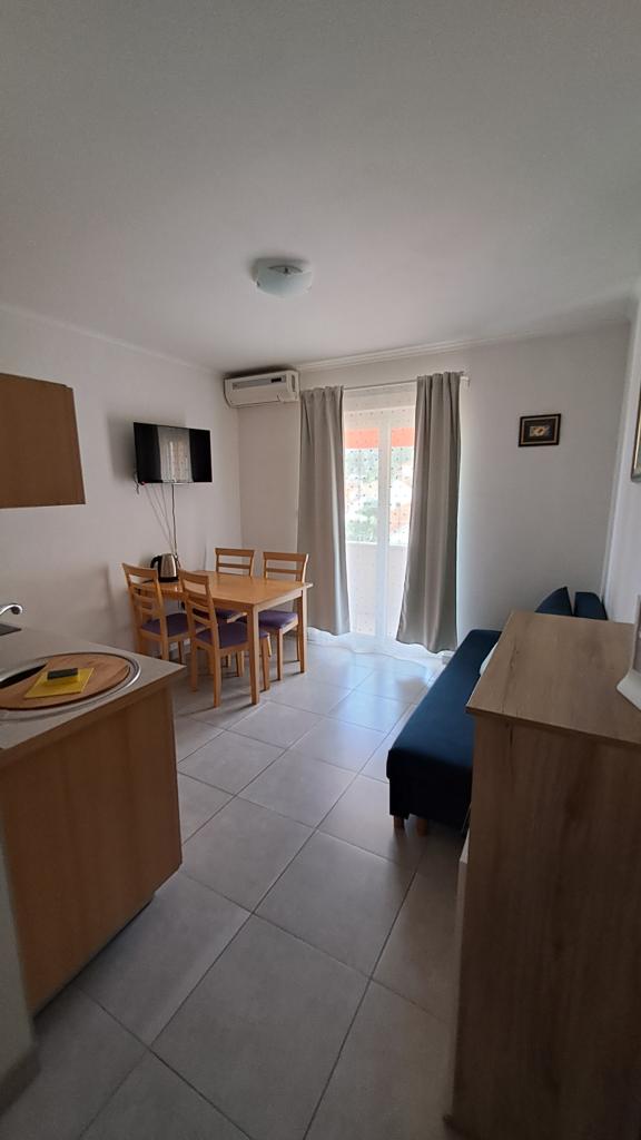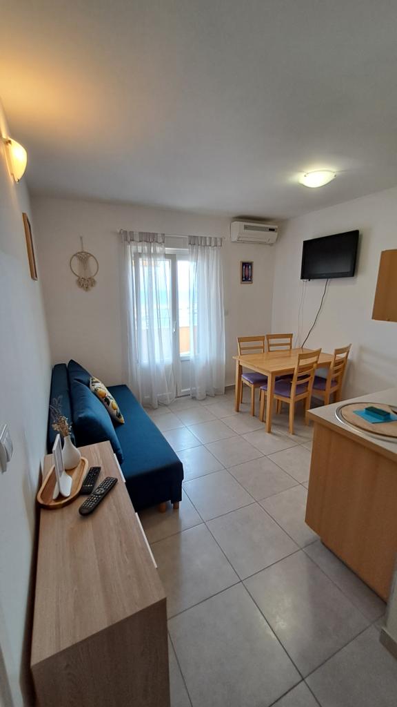 Compleet nieuw en modern ingericht appartement in Trpanj, gelegen eerste rij naar de zee, op de tweede verdieping van het huis. De faciliteit bevindt zich op een steenworp afstand van het strand en op enkele minuten van het centrum. Het appartement bestaat uit een slaapkamer, een volledig uitgeruste keuken in de eetkamer en de woonkamer, een badkamer en een groot terras. De kamer heeft een tweepersoonsbed en een extra bed en in de woonkamer staat een slaapbank voor maximaal twee personen.