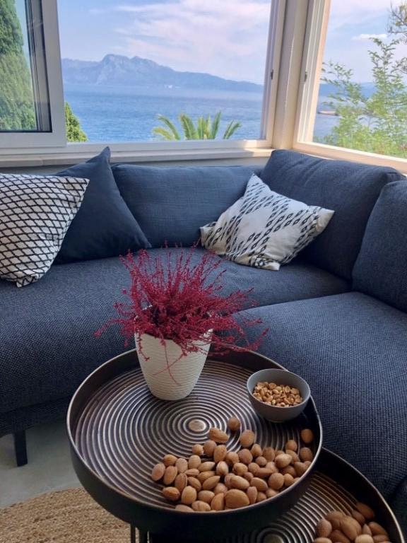 Zeer mooi en schoon appartement met een prachtig uitzicht op de blauwe zee. Grote parkeerplaats voor het gebouw voor Kroatische omstandigheden. Hieronder is een charmant wild strand met een plek voor koffie in de ochtend met het geroezemoes van de Adriatische Zee en krekels. En dit alles op steenworp afstand van het appartement... Geweldig... Heerlijk stadsstrand met douches en kleedkamers op zeer korte afstand. Alle restaurants in Trpanj binnen 10-15 minuten loopafstand. Het is moeilijk om een betere plek te vinden met zo'n fantastisch uitzicht.