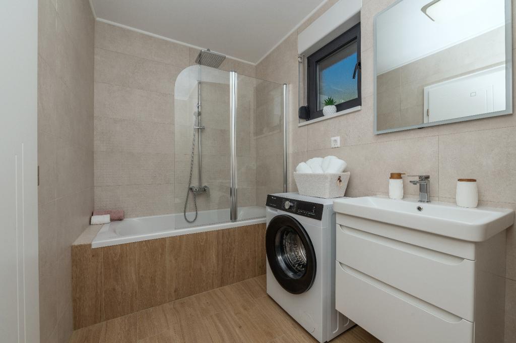 Te huur is een modern ingericht en volledig uitgerust appartement van 100 m² in Tučepi, ideaal voor een familievakantie. Het appartement bestaat uit twee slaapkamers, twee badkamers, een ruime woonkamer met keuken en eethoek en een groot terras met panoramisch uitzicht op de zee en de eilanden. Het appartement is voorzien van airconditioning, gratis wifi, tv, wasmachine en vaatwasser. Er is parkeergelegenheid voor de deur. Het strand ligt op slechts 5 minuten loopafstand. Bent u op zoek naar een comfortabele accommodatie met een kristalheldere zee en een prachtige boulevard? Dan is ons appartement de perfecte vakantie voor u.
