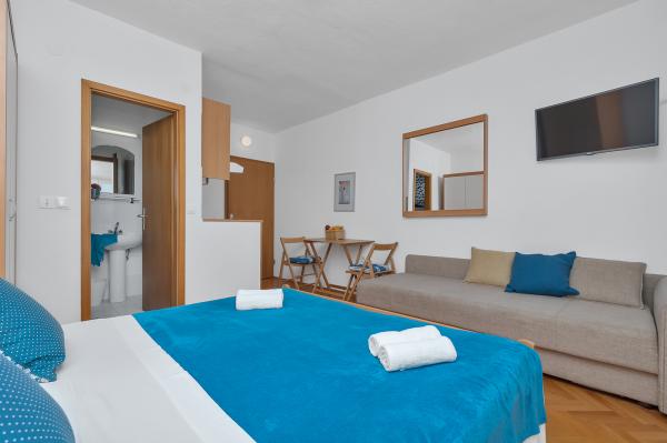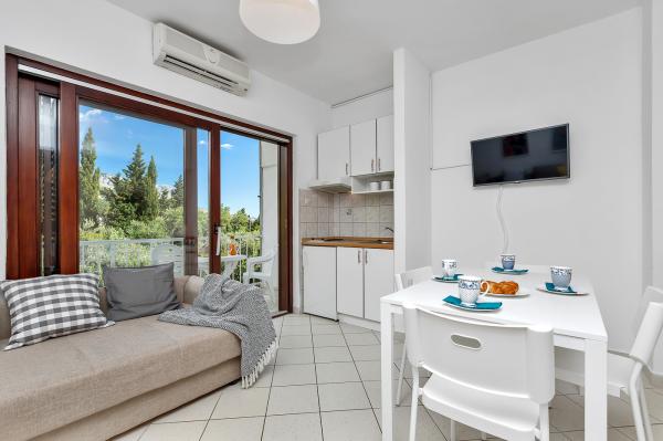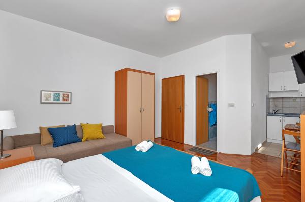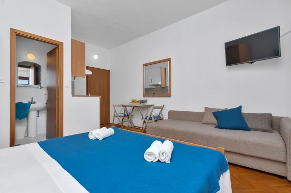 Geweldige plek om te ontspannen, grote parkeerplaats onder de olijfbomen, accommodatie ligt dicht bij de zee, de gastheren verwelkomden ons met brandewijn en koffie, zeer aangename mensen, ze waren er als we iets nodig hadden, ze verschoonden regelmatig onze handdoeken, Al met al hebben we heerlijk uitgerust.