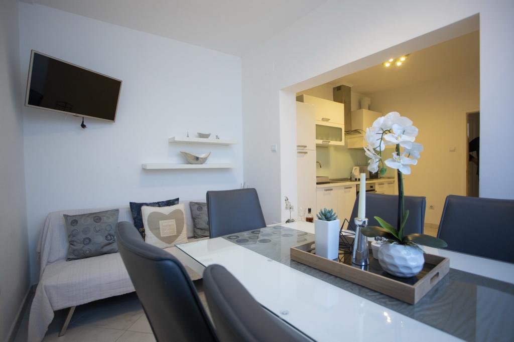 Zeer goede omstandigheden. Appartement volledig uitgerust, modern, nieuw meubilair, niet vernietigd. Foto's volledig van de feiten te geven. De gastheren altijd vriendelijk en gezellig. Tijdens ons verblijf hadden we een kleine crash van de auto. De eigenaar was zeer behulpzaam. Hij ons aanbevolen door een goede monteur II in alles geholpen. We raden ook aan het gebied - een goede plek om te verkennen. Prachtig uitzicht en een fantastische strand met douches, kleedkamers. Tevreden met haar zijn liefhebbers van zon en schaduw supporters, die groeiende dennenbomen langs het strand te bieden. Vervoer naar het strand duurt 5 minuten. te lopen. We zijn naar verschillende plaatsen in Kroatië, maar hier gaan we weer. Dank u voor een heerlijk verblijf en greet :)