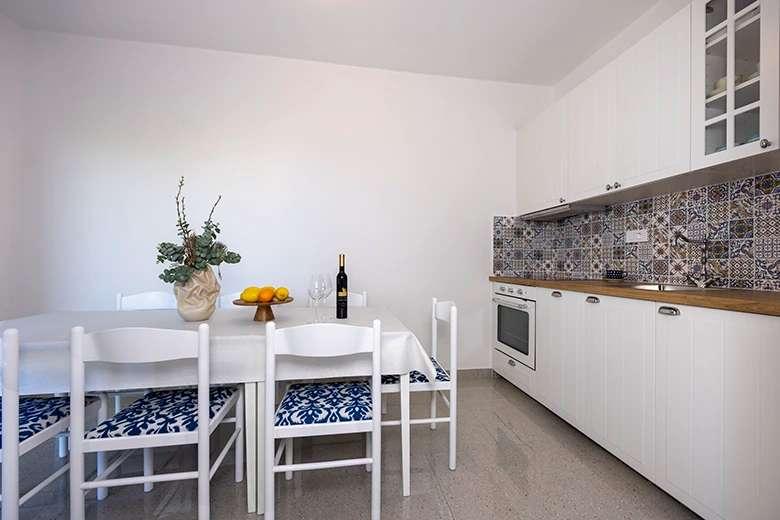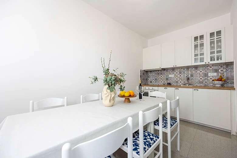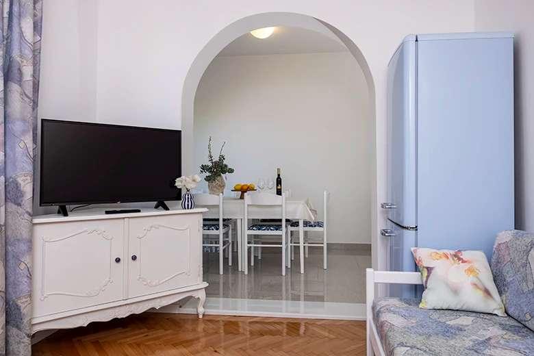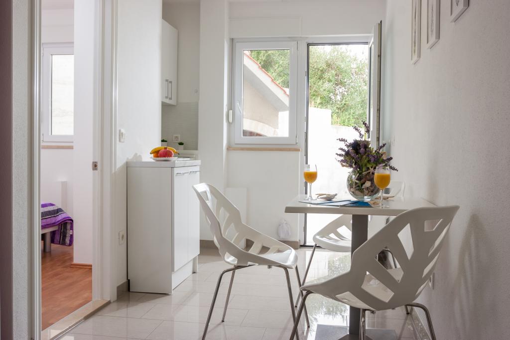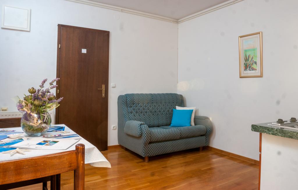 Apartments IRENA zijn volledig en modern ingerichte appartementen. Ze bevinden zich op slechts twintig meter van de zee. Het strand is gevormd uit kleine kiezelstenen en is versierd met pijnbomen die voor een aangename schaduw zorgen. Parkeren kan voor het huis en er is een mogelijkheid om gebruik te maken van de garage. Tevreden gasten en een groot aantal oude gasten zijn een kwaliteitsgarantie van de gastheren.