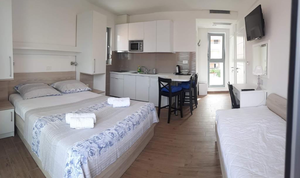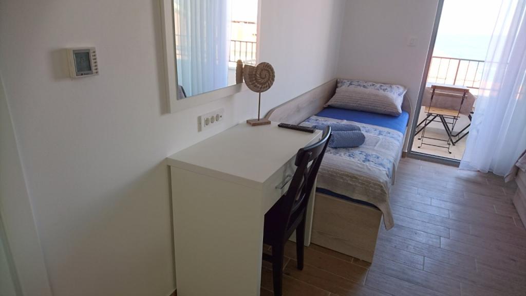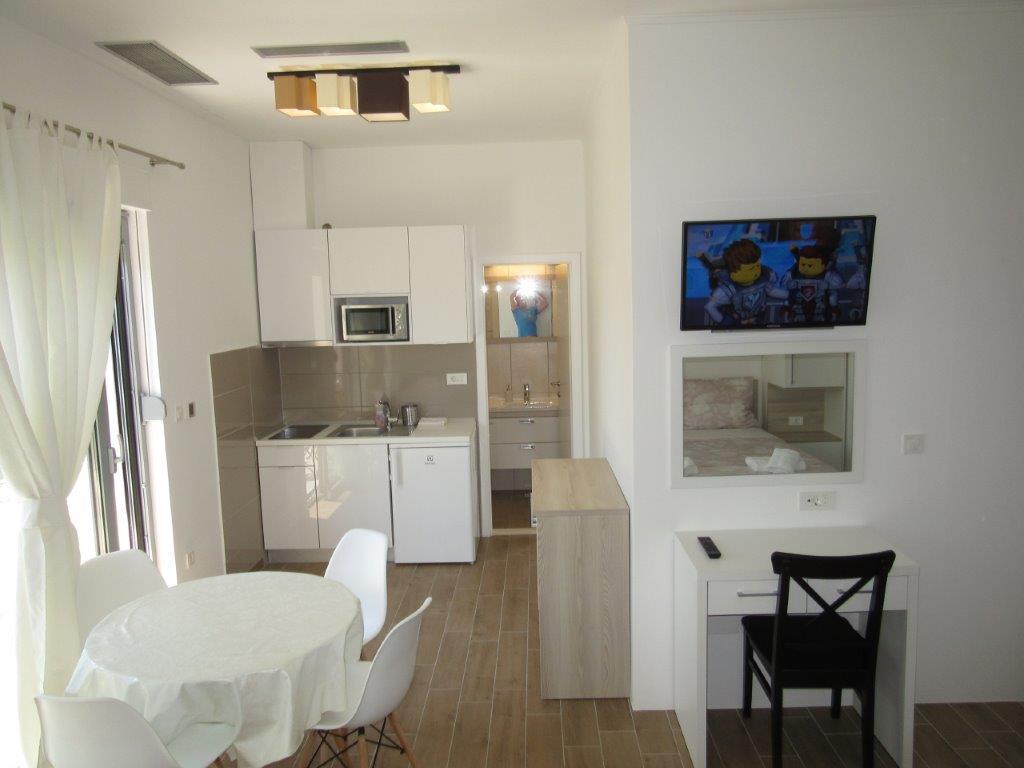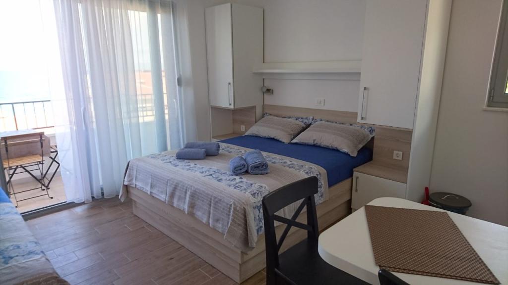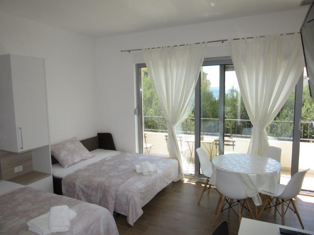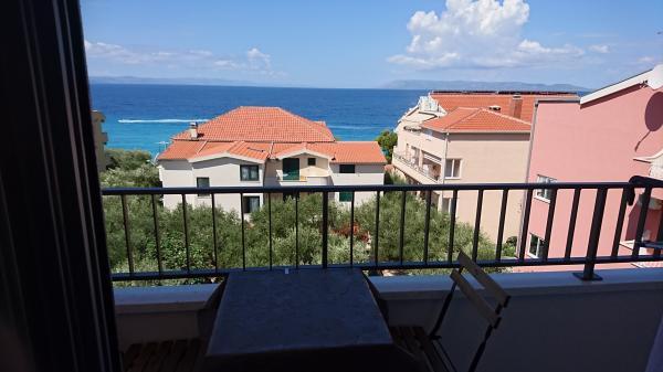 Alle appartementen bieden een prachtig uitzicht op zee en de mogelijkheid om op het terras te eten.