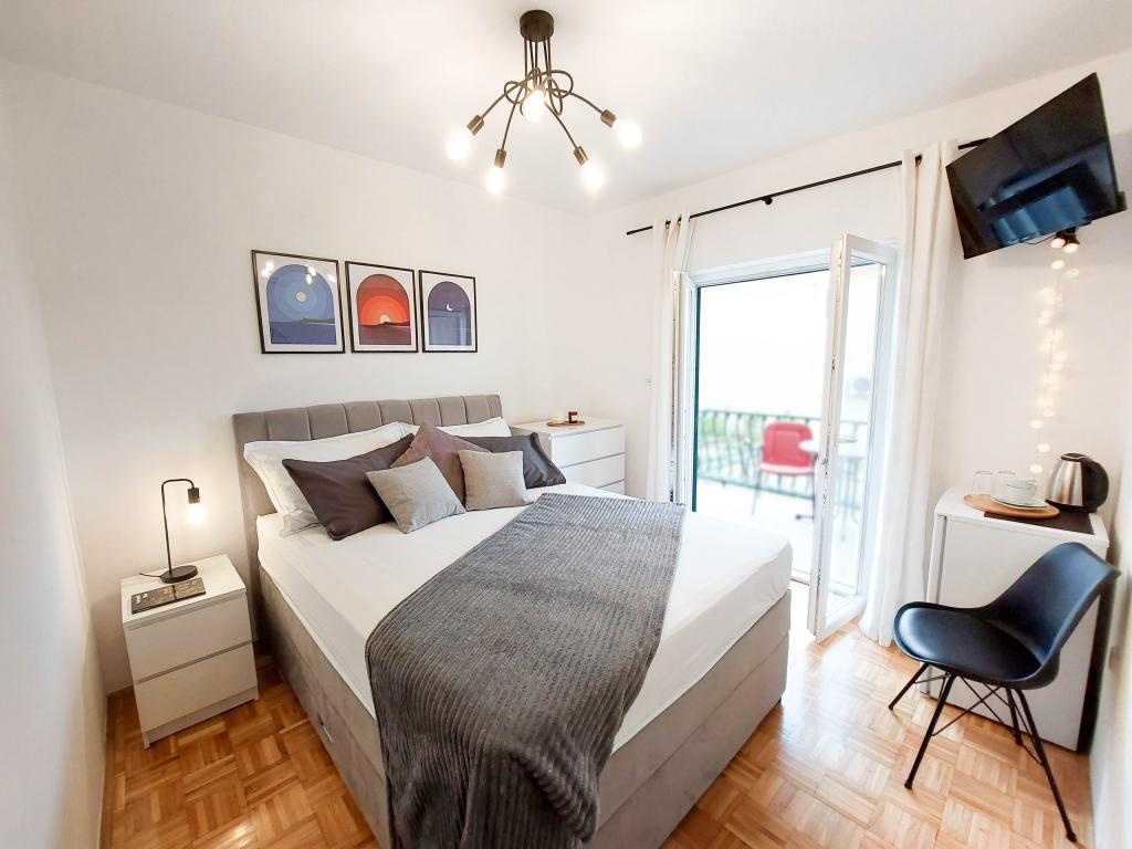 Het appartement ligt dicht bij het strand, ca. 1-2 minuten lopen. Airconditioning in beide slaapkamers met een aparte afstandsbediening, balkon aan Biokovo, grote parking. Bazen waren zeer beleefd en aangenaam. Het appartement kan aanbevelen.