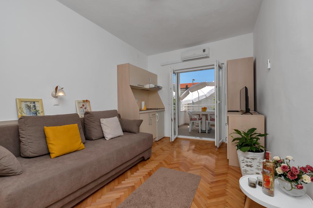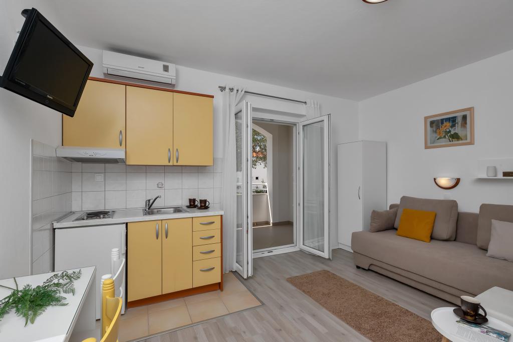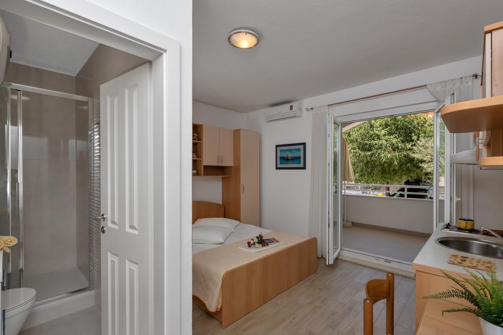 Apartments Marija ligt op 70 meter van het kiezelstrand en de zee. Er zijn restaurants en een winkel in het centrum van het gebouw, en het centrum ligt op 5 minuten lopen.