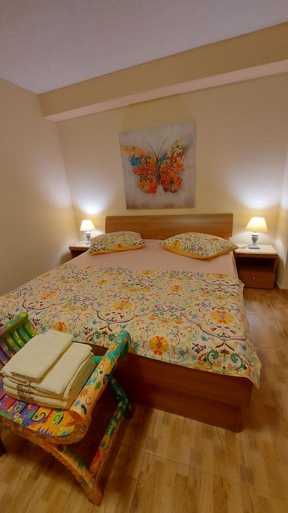 Inlusief wel Toeristenbelasting.We zochten een accommodatie die geschikt was voor een gezin met kleine kinderen... een voldoende uitgeruste keuken (als er iets ontbrak, bracht de gastvrouw alles), een ruime kamer voor 4 personen en een prachtig terras met uitzicht op zee. Alles in de schaduw van de planten in de tuin. 's Avonds brandden de lampjes, wat vooral de kinderen erg waardeerden, en het was er 's nachts heerlijk rustig. Onze kleine dierenliefhebbers vonden de huiskatten ook geweldig en keken graag even in de garage van de gastvrouw. We hadden geen last van muggen en mevrouw Nensi verwende ons voortdurend en vroeg of alles naar wens was. Voor mij was het een heerlijke vakantie met kinderen. De boulevard is op loopafstand, er zijn overal trappen naar de boulevard en het strand. Winkels zijn ook op loopafstand. De bereikbaarheid voor de accommodatie was perfect, net als op het terrein zelf. Het enige minpuntje was de weg voor het huis, maar de accommodatie ligt veel hoger, ook al zaten we op de begane grond. Zelfs dat was 's nachts niet te horen. Dus bedankt Nensi!
