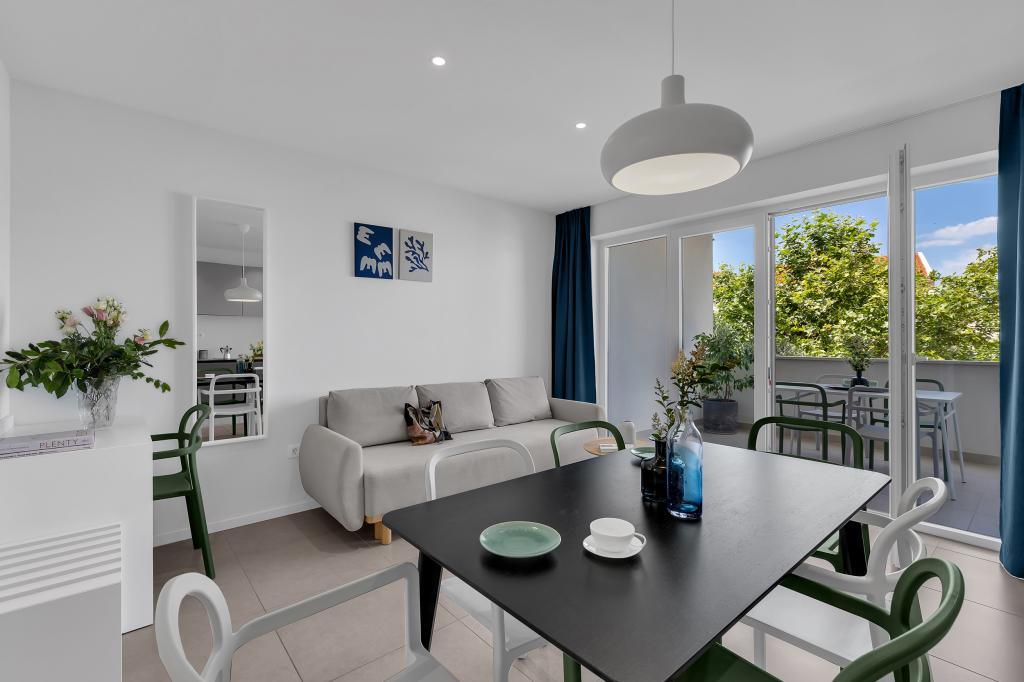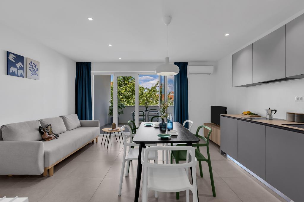 appartementen nr. 18 liggen dicht bij de zee en een kiezelstrand versierd met pijnbomen die voor een aangename schaduw zorgen. De appartementen zijn onlangs gerenoveerd, volledig uitgerust met grote loggia's en een eigen parkeerplaats. Slechts een paar minuten lopen naar het stadscentrum en alle belangrijke voorzieningen.