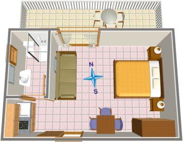 Appartement voor twee personen + twee extra bedden (22 m2)