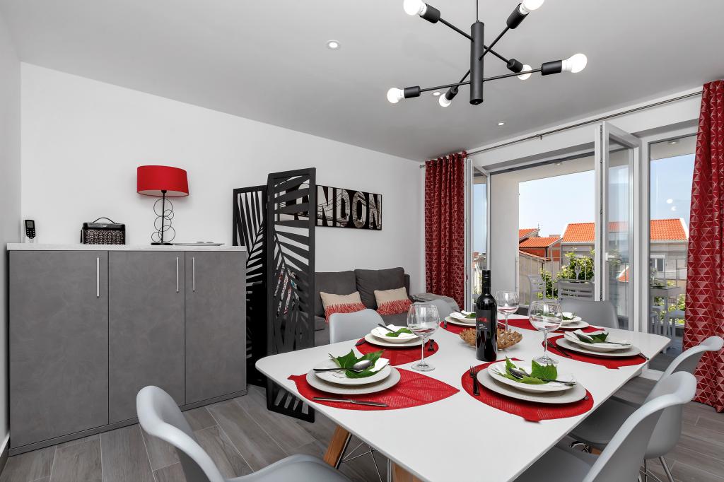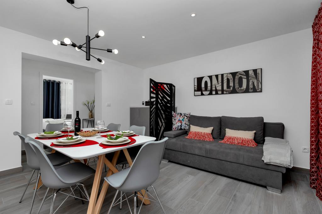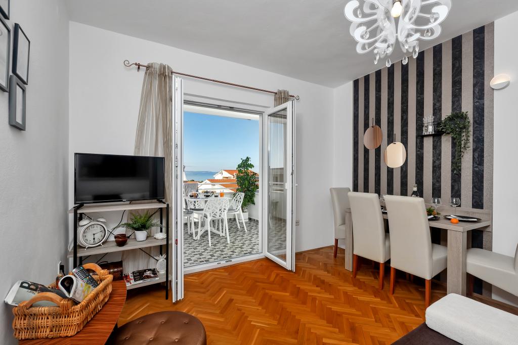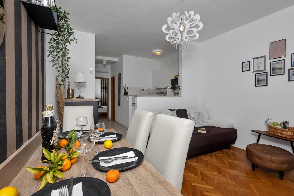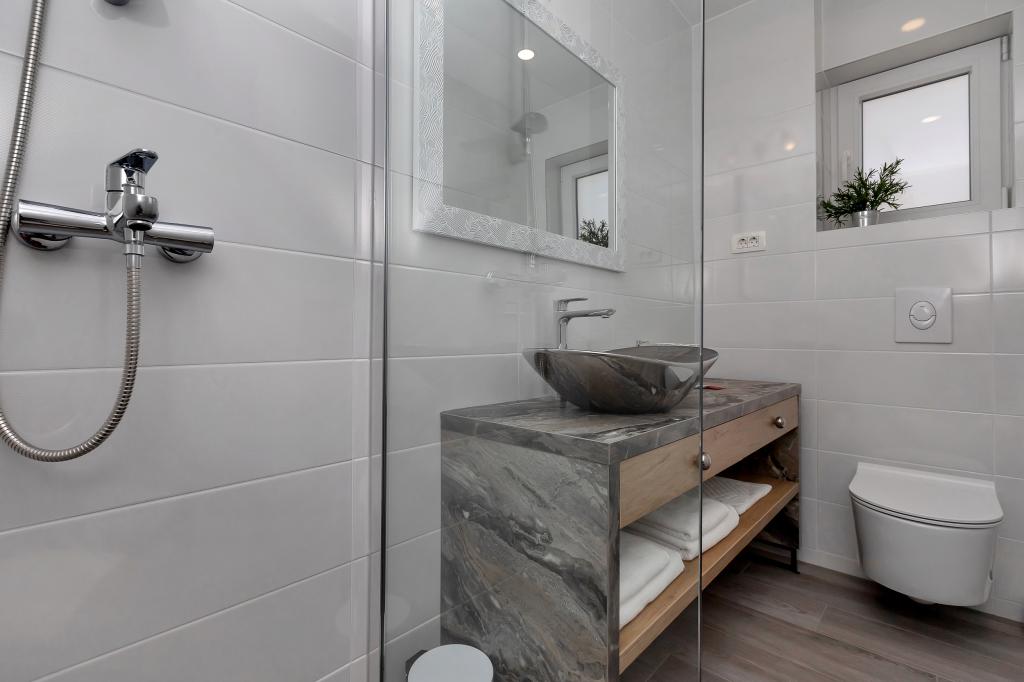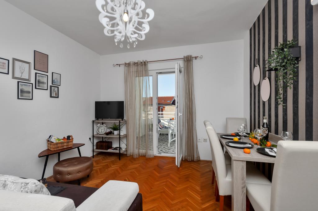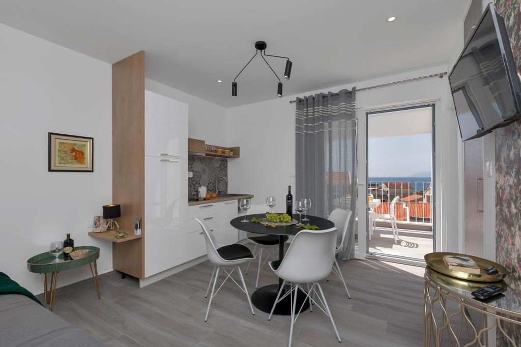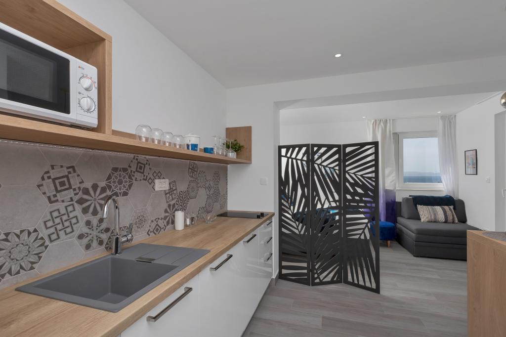Gloednieuw en in alle opzichten uitgerust appartement met alles wat u nodig heeft voor een aangename vakantie. Het bed is zeer comfortabel, de badkamer is ruim, de keuken heeft alles wat je nodig hebt om een maaltijd te regelen. Het terras is mooi met een geweldig uitzicht op de zee en de rest van de plaats. In de slaapkamer is het bed zo gepositioneerd dat je er de prachtige zonsopkomsten en zonsondergangen vanaf kunt zien. Het gebouw is rustig en vredig. Er is voldoende parkeergelegenheid voor een onbelemmerde in- en uitrit. De grootste lof voor de netheid, die boven het gemiddelde ligt. Alles was onberispelijk. Viskovici is een beleefde, behulpzame, altijd beschikbare en warme familie. We raden deze accommodatie en deze geweldige mensen aan iedereen aan.