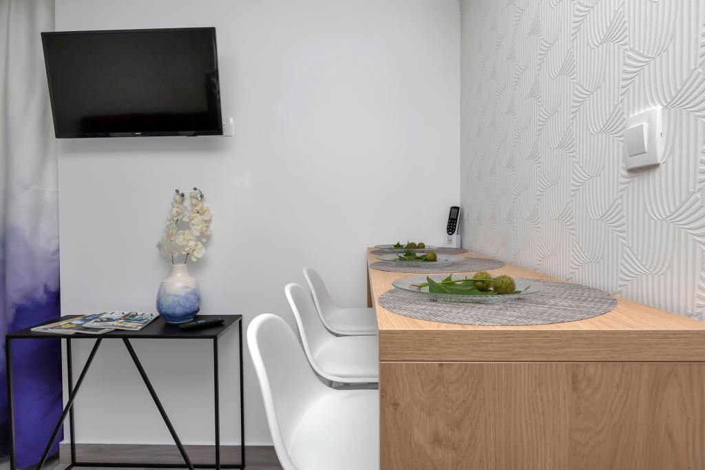 Zeer mooi en modern gebouw, de kamer is ook mooi en modern, alles is volledig functioneel en ruikt mooi en fris. De airco koelt prachtig, wifi heeft een goed signaal, keuken en precies goed, er ontbreekt niets. Naast dit alles, de zeer prettige en lachende eigenaresse mevrouw Tanja, is er niets om over te klagen, ik raad het iedereen ten zeerste aan.