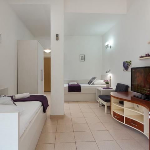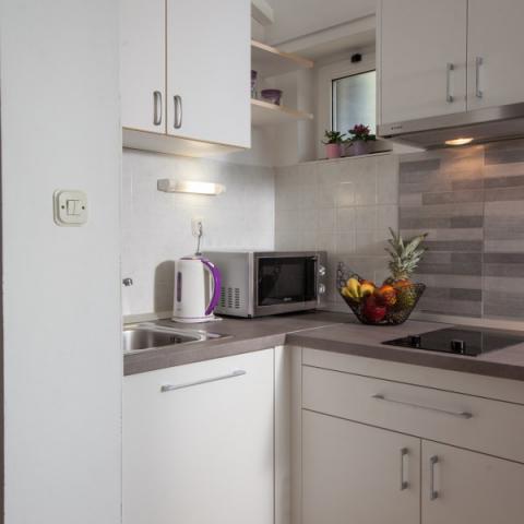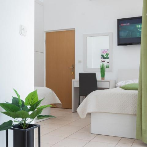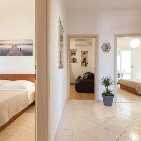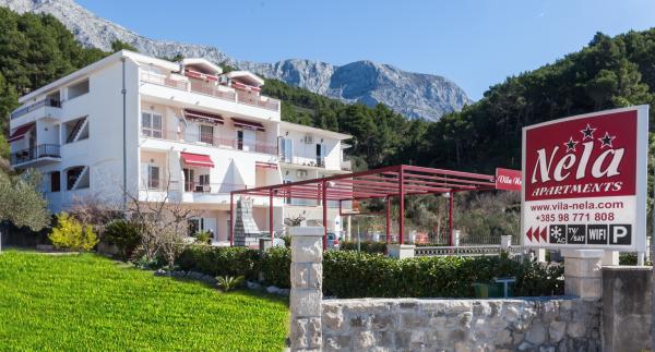 Villa Nela ligt naast het Alga Hotel, op slechts 150 meter van het strand. De nabijheid van het strand, sportterreinen, boulevard, restaurants, cafés en alle andere voorzieningen die nodig zijn voor een complete vakantie, staat garant voor een aangename en onvergetelijke zomer. De familie Covic is niet alleen de eigenaren van de villa, maar ook het villapersoneel dat zorgt voor alles wat uw vakantie in Tučepi zo aangenaam mogelijk zal maken. Dit soort gastvrijheid geeft de gasten van Villa Nela een familiale sfeer, een persoonlijke en zeer hartelijke service die u niet kunt krijgen in grotere hotels. Met traditie en hoffelijkheid biedt Villa Nela u alles wat een eersteklas toeristische faciliteit van dit type kan bieden. Appartementen hebben een eigen badkamer, airconditioning, satelliet-tv, draadloze internetverbinding, kluisjes, grote ruime balkons en beveiligde parkeerplaats voor de villa. Het klimaat is gedesinfecteerd en de appartementen zijn vlekkeloos schoon.