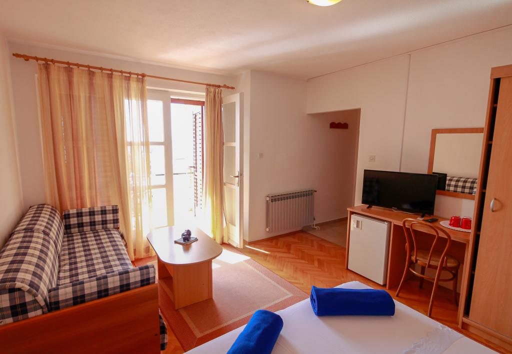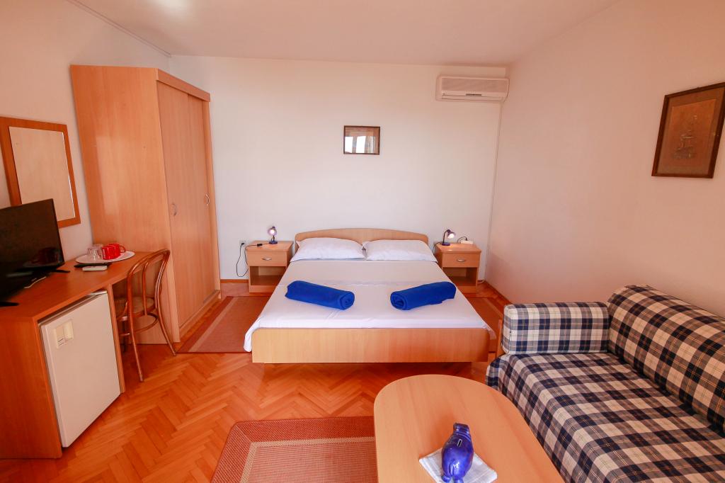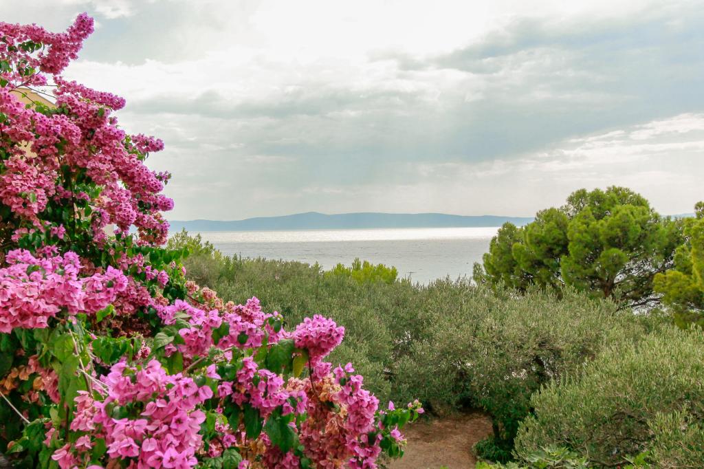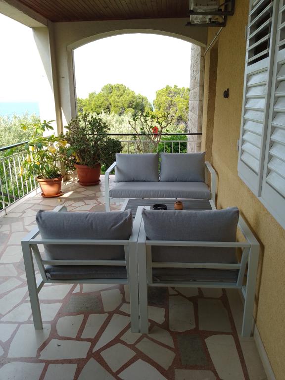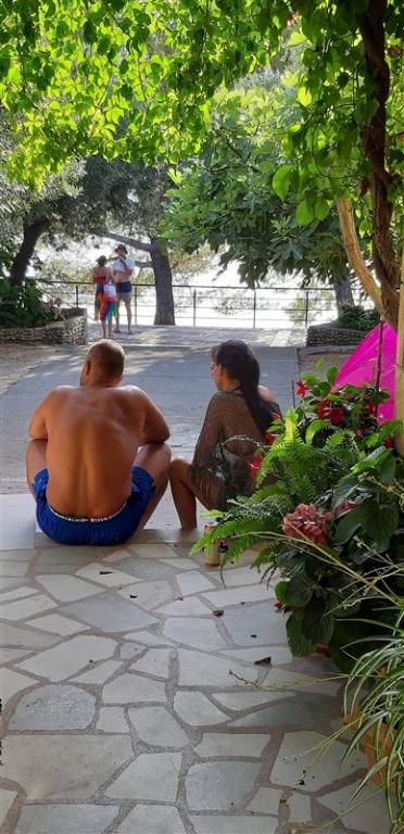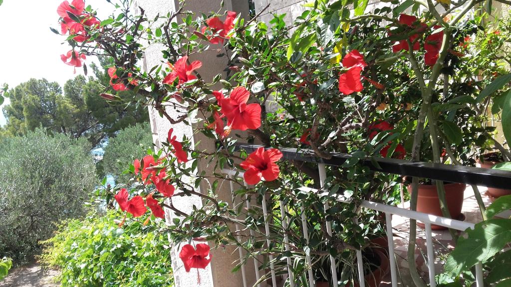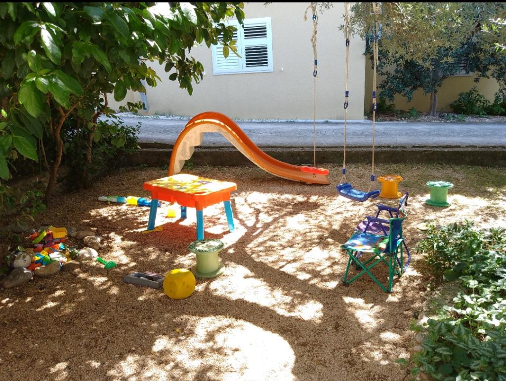 Villa Ševelj ligt op 10 meter van het strand, eerste rij aan zee, rustige tuin met olijfgaard en parkeerplaats, kinderspeelplaats en tafels in de schaduw.