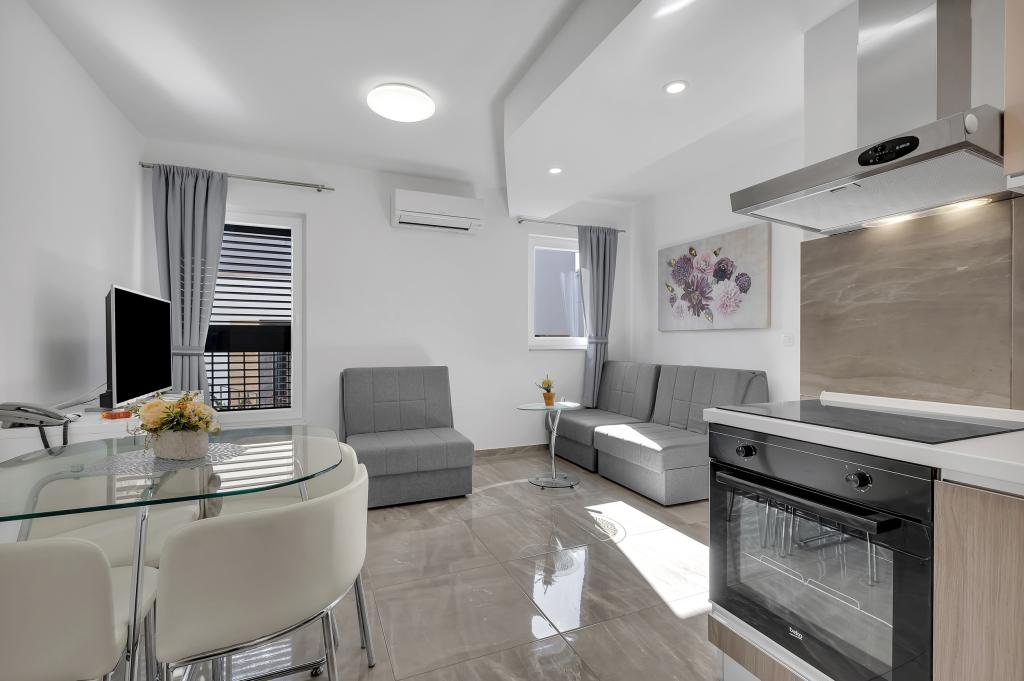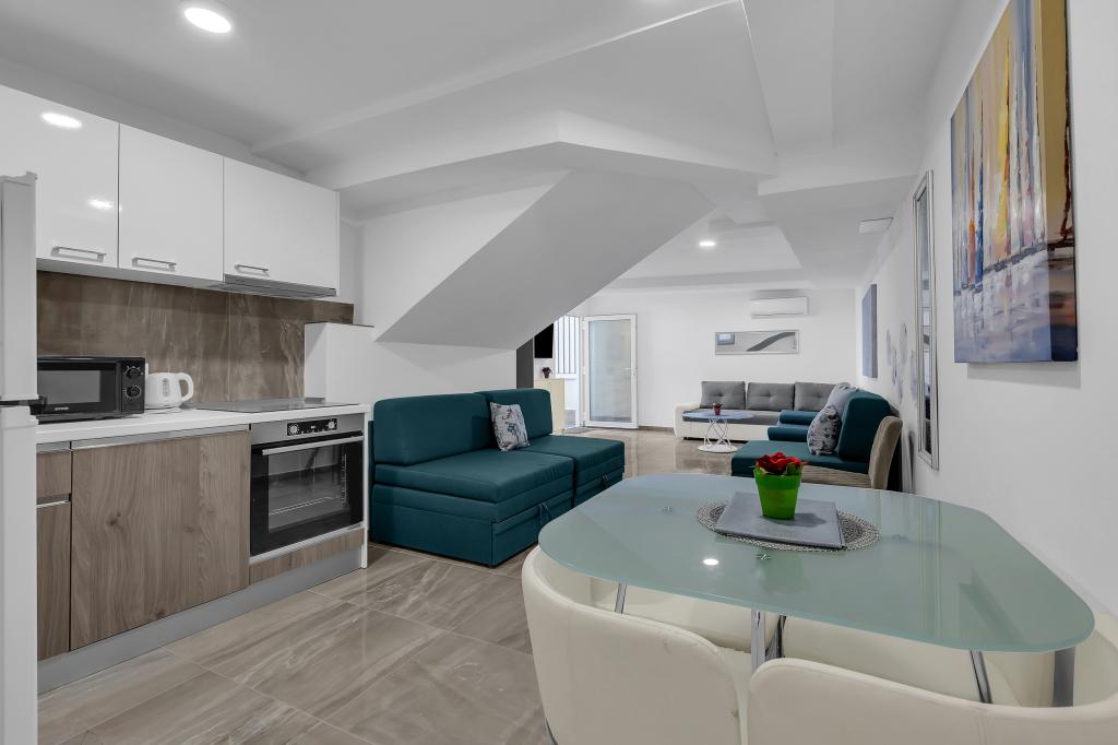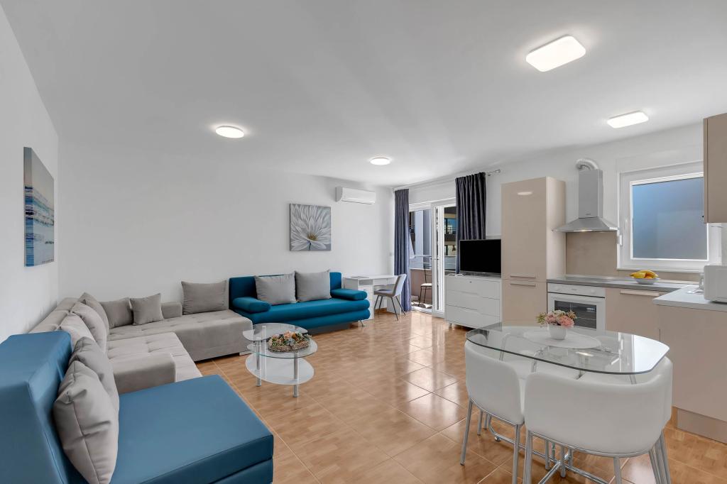 Volledig en modern ingerichte, exclusieve en luxe 4-sterrenappartementen in Tučepi, vlakbij zee (NIEUW GEBOUW). Het complex ligt op 5 minuten lopen van het centrum en op 2 minuten lopen van het strand (100 m). Naast de volledig uitgeruste faciliteiten beschikt elk appartement over een garage, lift en terras. De prijs van het appartement begint bij € 79 per dag, afhankelijk van het aantal personen en de periode (aantal nachten). Toeristenbelasting is bij de prijs inbegrepen.