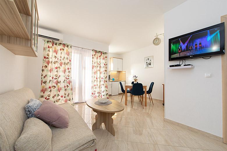 Inlusief wel Toeristenbelasting.De eigenaresse is zeer aanspreekbaar en beleefd Het appartement is extreem schoon en geurig, de bedden zijn comfortabel. Een groot terras met een kleine keuken die alles bevat wat je nodig hebt om te koken In het appartement is er een wasdroger, haardroger, waterkoker, koffiezetapparaat en in de gang is er een kast voor extra benodigdheden (toiletpapier, vuilniszakken, wasmiddel, strijkijzer, strijkplank,...) Het appartement ligt zeer dicht bij alles, bakker, markt, restaurant, centrum, strand 50 m.. Er is gratis parkeergelegenheid aan de voorzijde van het appartement Ik raad het iedereen ten zeerste aan