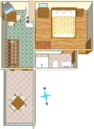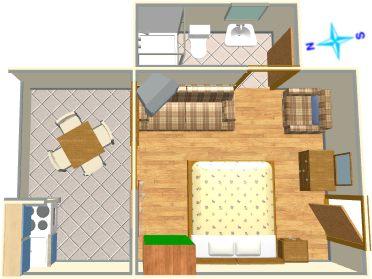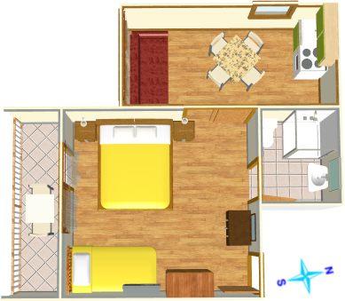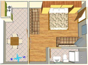 Appartement voor drie personen + extra bed (30 m2)