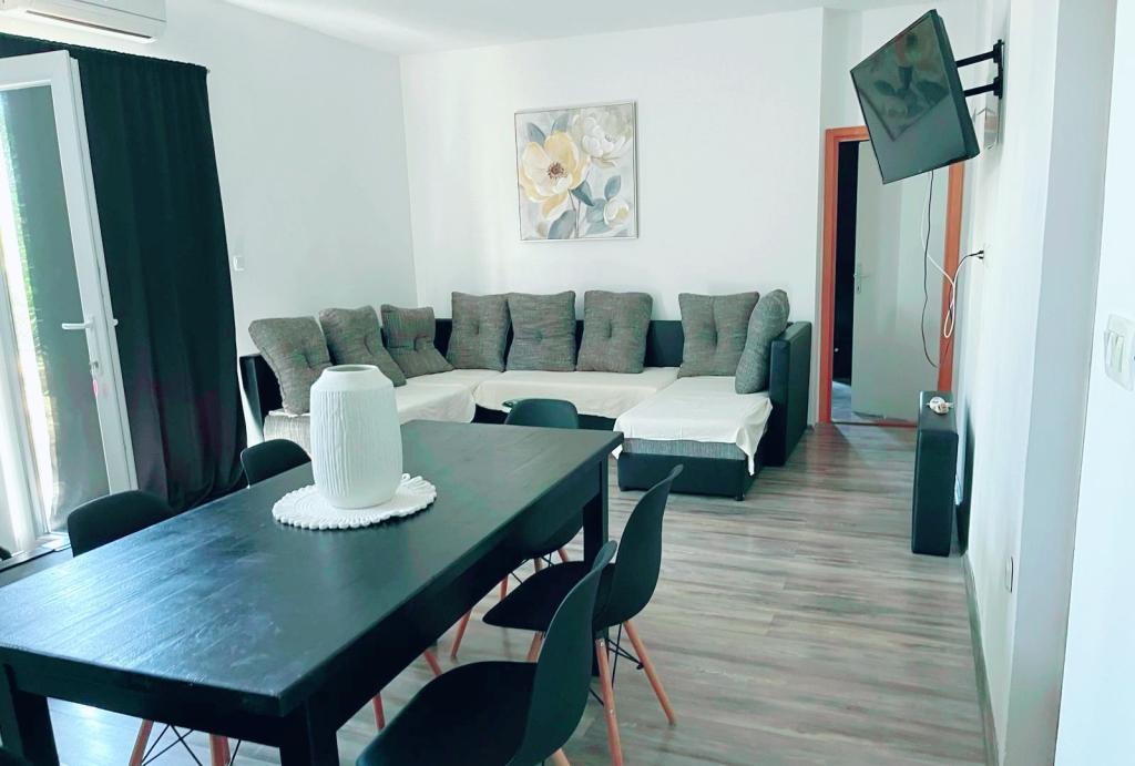 Ik bied volledig uitgeruste appartementen aan. Het hoofdstrand ligt op 4 minuten loopafstand, u heeft geen auto nodig. Parkeren is bij de prijs inbegrepen. Elk appartement is apart en heeft een eigen ingang en terras. Elk appartement biedt ook privacy. De accommodatie is gelegen in een rustig deel van de stad zonder drukte, omgeven door prachtige natuur. In de directe omgeving van de accommodatie vindt u ongerepte natuur, bossen, jogging-, fiets- en wandelpaden, waar u heerlijk kunt wandelen en wandelen. De zee is gegarandeerd schoon, de stranden zijn schoon en netjes, geschikt voor kleine kinderen, en bestaan voornamelijk uit zand en grind. De promenades langs de zee zijn lang en prachtig ingericht. De stad zelf biedt restaurants, tavernes, pizzeria's, fastfoodrestaurants, cafés, bars, banketbakkers, bootverhuur, excursies... Natuurlijk is er ook zomers entertainment voor iedereen. Turanj is een Dalmatische stad tussen Zadar en Biograd in de gemeente Sv. Filip i Jakov. De appartementen beschikken ook over airconditioning en wifi. Honden zijn niet toegestaan!