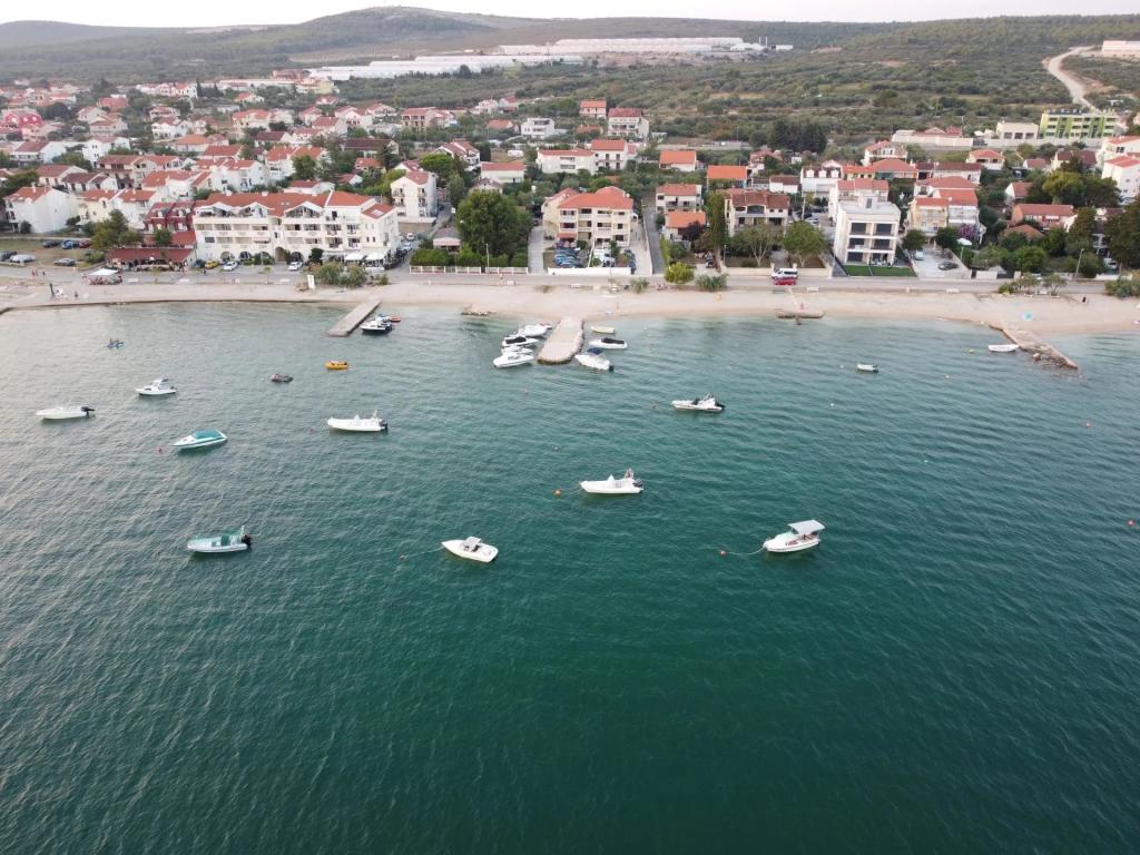 Volledig en modern ingerichte appartementen, eerste rij naar de zee, bevinden zich aan de boulevard aan zee. Het object is halverwege naar het centrum van Turanj en halverwege naar de cent van Sv. Filipa en Jakova ongeveer 10 minuten lopen van beide centra. Een van de stranden ligt voor de faciliteit en de anderen zijn in de buurt. Ambachten, restaurants, kunstnijverheid, huurboten, beachvolleybal, snacks, visverkopers en alles wat je nodig hebt is dichtbij en lopen. Parkeren is overal mogelijk. Aan de voorzijde van het huis is een hei waar een aanlegplaats voor boten mogelijk is.