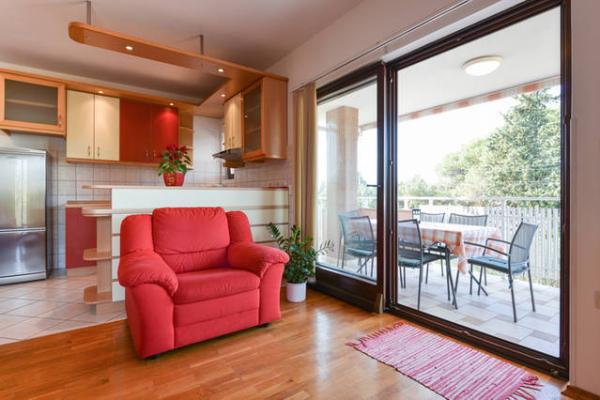 Ugljan Island is de ideale plek voor uw vakantie, of u nu op zoek bent naar familie accommodatie, entertainment of ontsnappen aan de hectiek van het stadsleven. Het eiland is verbonden met het vasteland door frequente veerboten. Modern appartement in het gehucht Muline met prachtige zonsondergangen en stranden maakt het de perfecte gelegenheid voor ontspanning. Het appartement bestaat uit een slaapkamer met een tweepersoonsbed, een woonkamer met een tweepersoonsbed, een volledig uitgeruste keuken, badkamer en een groot terras met meubilair. De prijs is inclusief toeristenbelasting, airconditioning, draadloos internet, overdekte parkeerplaats, gebruik maken van de wasmachine, droger en strijkijzer, barbecue en schommel die geschikt zijn voor kinderen. Het appartement is gelegen op slechts een steenworp afstand van winkels, pizzeria's, cafés en fast food, en het busstation. In de buurt zijn zand- en kiezelstranden (South Haven), en leg de mooiste zonsondergang op het eiland, en een aantal culturele en historische bezienswaardigheden.