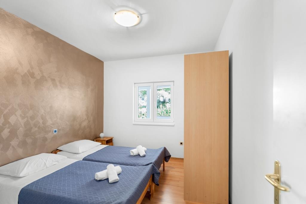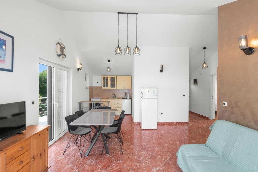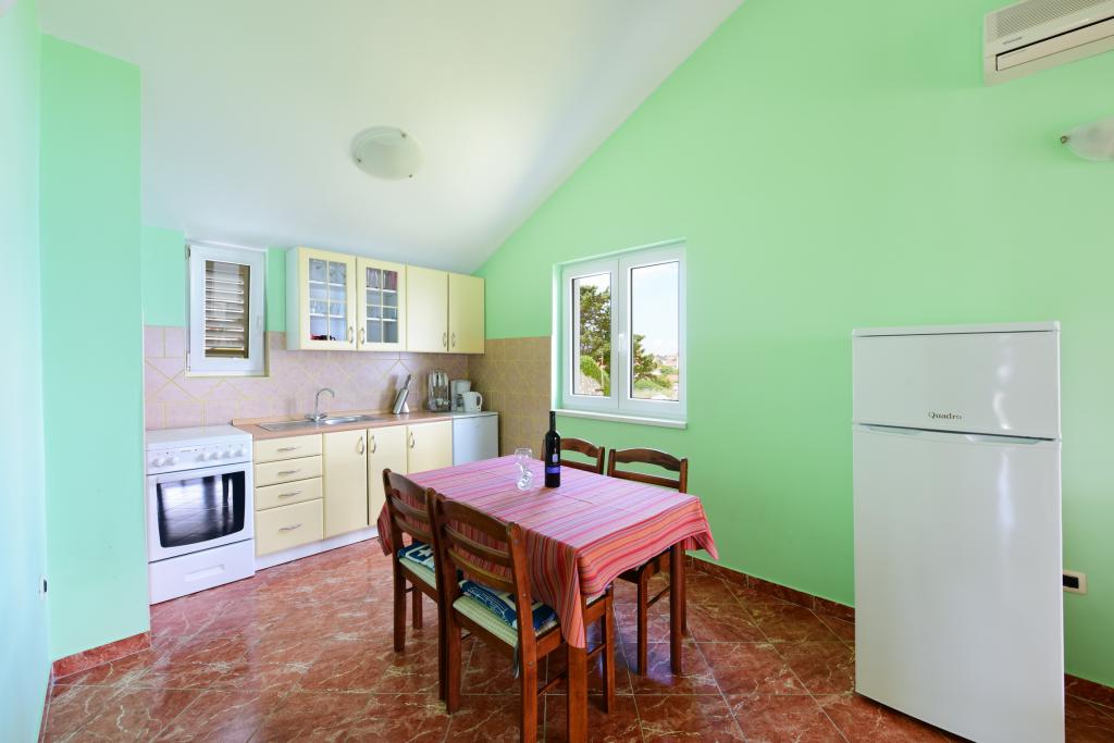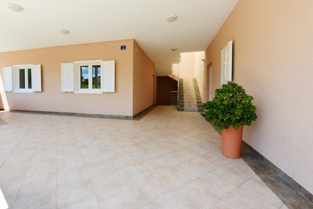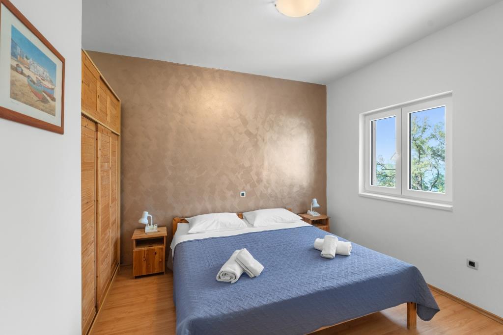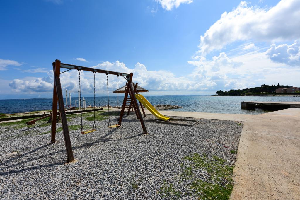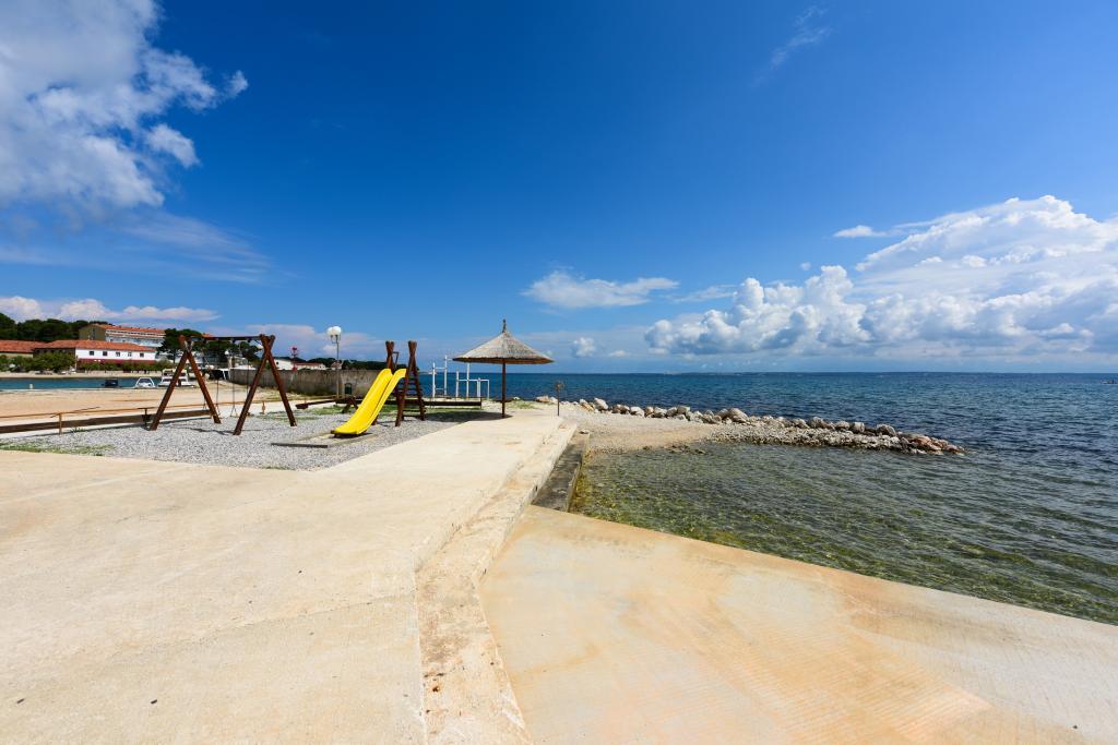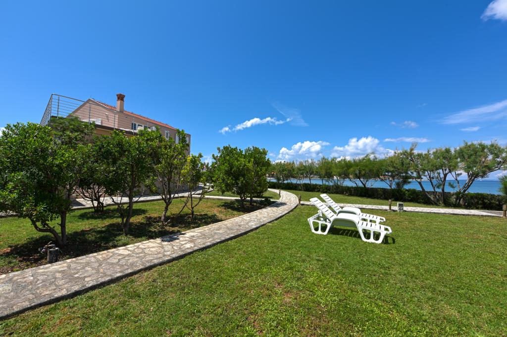 De appartementen liggen direct aan zee in een rustige en vriendelijke landelijke omgeving. Elk appartement beschikt over een groot terras met uitzicht op zee. Ze worden omringd door een aangelegde mediterrane tuin waar kinderen heerlijk kunnen spelen. In de tuin zijn ligstoelen en een gemeenschappelijke barbecue beschikbaar. Elk appartement heeft 2 badkamers. Op 5 minuten loopafstand ligt het centrum, waar een markt is met producten van lokale boerderijen, evenals winkels en restaurants. Er is 24/7 medische noodhulp beschikbaar. Het strand direct voor het appartement is een kiezelstrand. Op korte afstand liggen meerdere stranden waar ook een zandstrand is. Met de auto: de snelweg leidt direct naar de veerhaven van Gaženica. Daarna gaat u aan boord van de veerboot naar Preko. In de zomer zijn de treinen vaak te vinden, minimaal elk uur. Vanaf de veerhaven van Preko neemt u de hoofdweg van het eiland naar de stad Ugljan, die 10 km verderop ligt. Aankomst per vliegtuig: Vanaf de luchthaven van Zadar per bus of taxi in 15 minuten. U komt direct aan in de veerhaven van Gaženica, waar u aan boord gaat van de veerboot naar Preko.