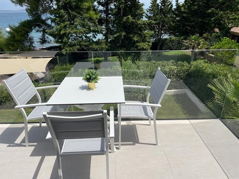 Volledig nieuw en modern appartement, eerste rij aan zee, 50m2 met een ruim balkon om te zonnebaden en te dineren. Beveiligde parkeerplaats op de binnenplaats van het gebouw met een elektrisch verplaatsbaar hek. De appartementen zijn ontworpen met internet-tv 55" in de woonkamer en 43" in de slaapkamer, streamingdiensten (zoals Netflix). Keukens uitgerust met koelkast, vriezer, inductiekookplaat en oven, en vaatwasser. Inbegrepen, haardroger, handdoeken, beddengoed, servies, servies, toiletpapier. Dicht bij het centrum met 3 supermarkten en 4 restaurants in het centrum van de stad. Er zijn ook twee pizzeria's in de buurt. Er zijn twee strandbars in de buurt, "Ritam" en "Bichikleta". Tijdens het seizoen biedt de bar "Ritam" een interessant animatieprogramma met muzikale artiesten.