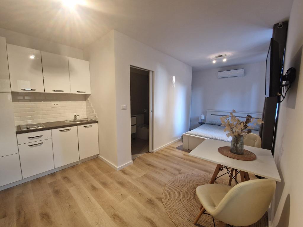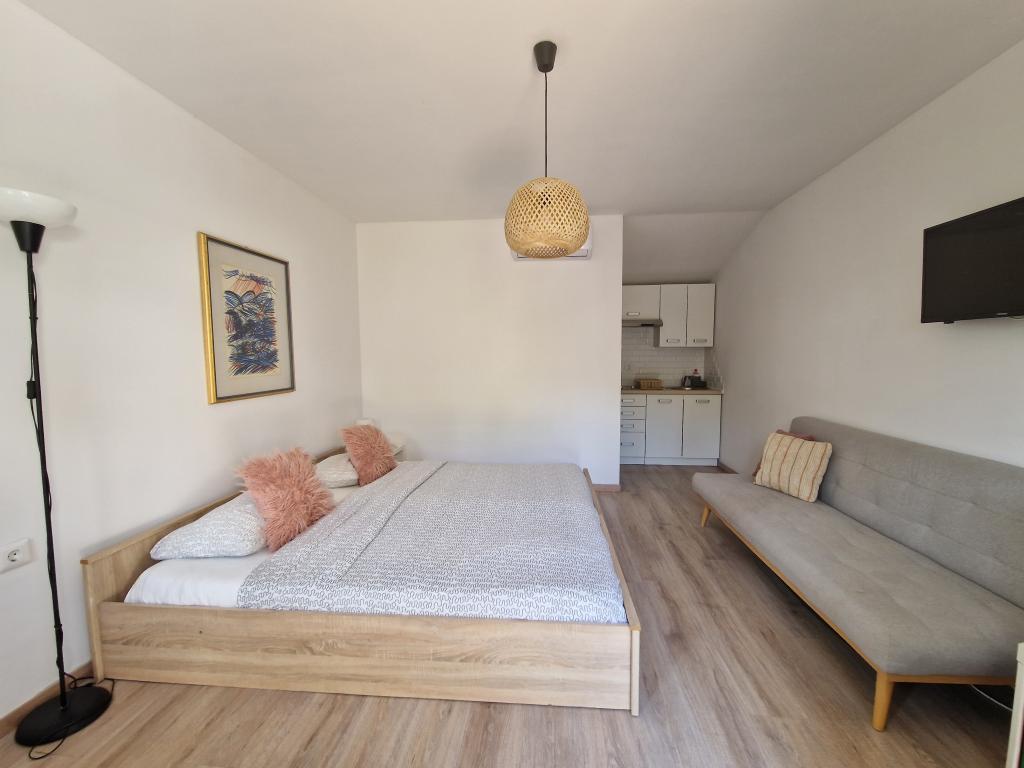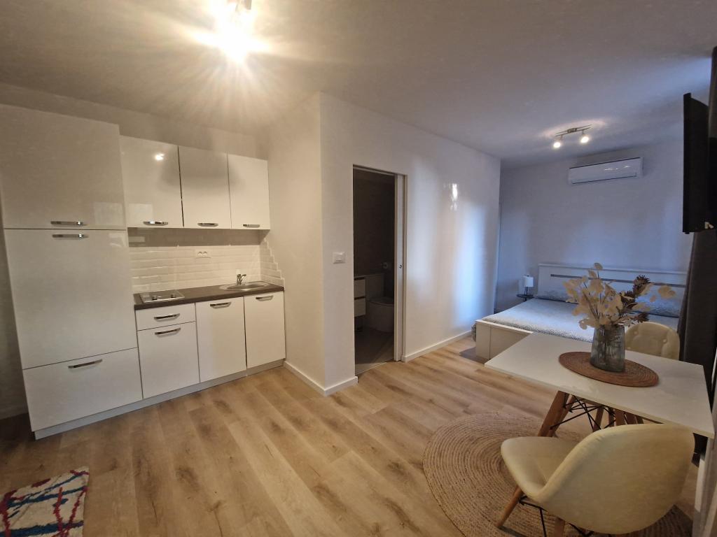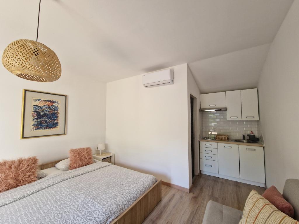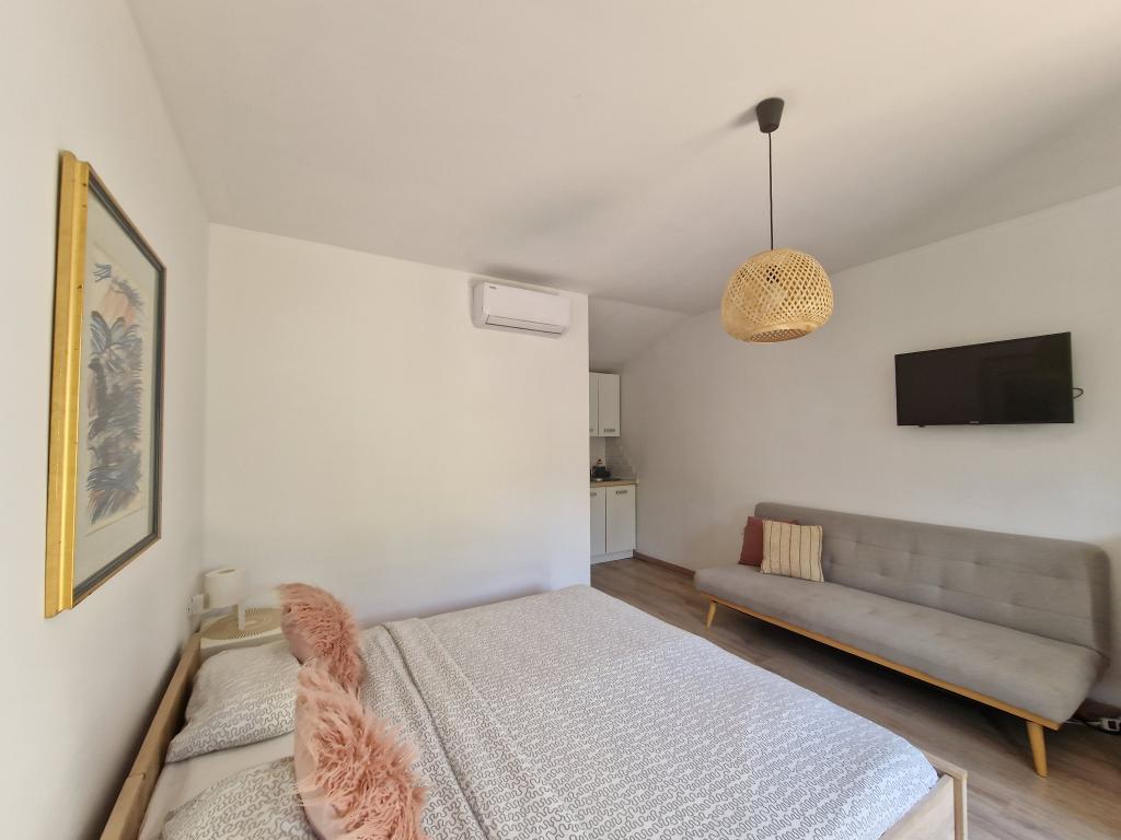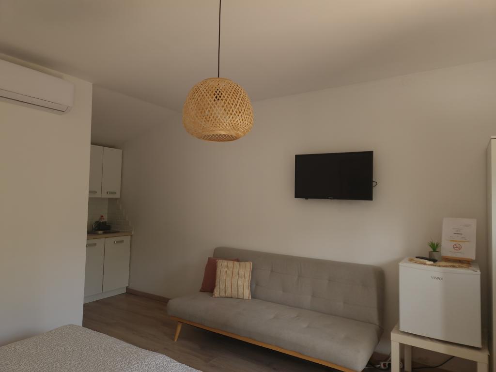 Appartementen en kamers Lav bevinden zich in Umag, in het kleine en rustige dorpje Valica, op 1,2 km van het prachtige strand van Kanegra en op 6 km van het centrum van Umag. De accommodatie ligt op 16 km van Slovenië en op 36 km van Italië (Triëst). Alle appartementen beschikken over een keuken, terras of balkon, tv, gratis wifi, gratis parkeergelegenheid en airconditioning. Wij bieden studio's, appartementen met 1 of 2 slaapkamers. We hebben ook kamers met een eigen badkamer, deze bevinden zich op de begane grond, hebben een kleine tuin, airconditioning, tv, wifi, waterkoker, kleine koelkast en parkeergelegenheid. Winkels, entertainment en sportfaciliteiten liggen op ongeveer 1,5 km afstand, het fietspad van Parenzana op slechts 100 meter, een golfbaan op 3 km, casino's op een paar kilometer en een aquapark op een paar kilometer. Het nudistenstrand FKK ligt op 1,5 km afstand van het appartement. De locatie is geschikt voor het verkennen van Istrië, de kustplaatsen en het binnenland. Vanuit hier zijn vele excursies mogelijk: Venetië, de Plitvicemeren, Postojna Jama en vele andere. Onze appartementen en kamers bieden u rust en een uitstekend startpunt voor het ontdekken van Istrië en zijn schoonheid.