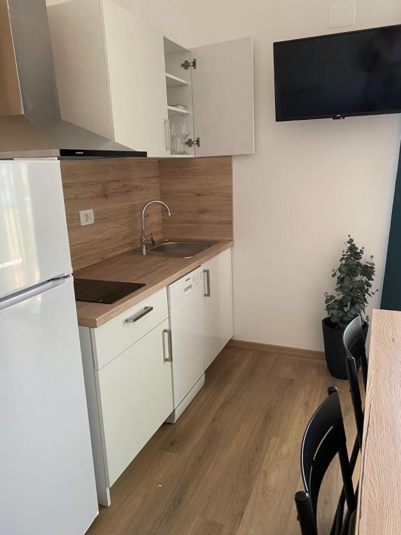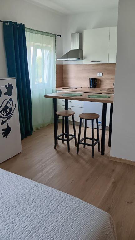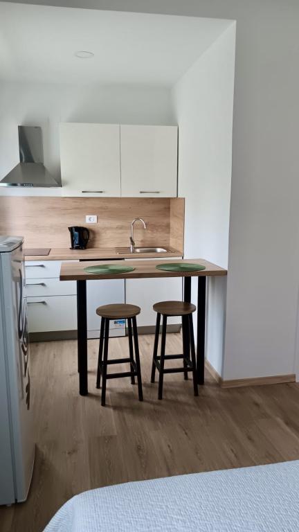 Onze studio-appartementen bieden alle comfort voor 2 personen en bestaan uit een nachtgedeelte, een kookgedeelte en een toilet. Ze zijn uitgerust met satelliet-tv, airconditioning, keukengerei en beddengoed. Wij hebben geen mogelijkheid om een kinderclub toe te voegen. Er is parkeergelegenheid op het erf.