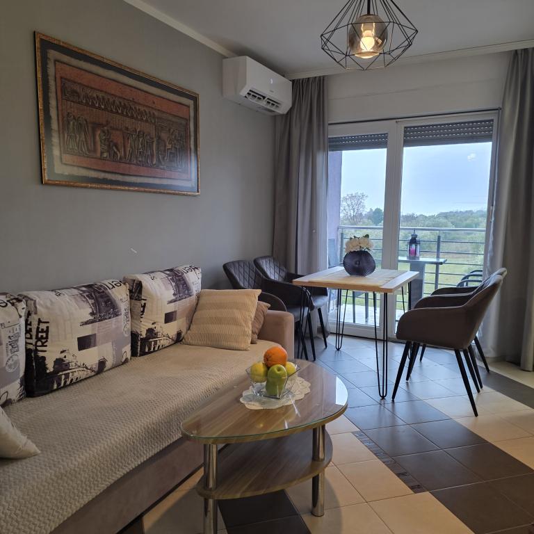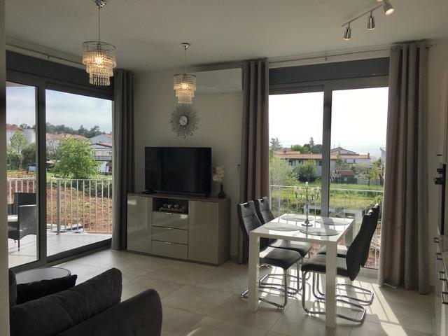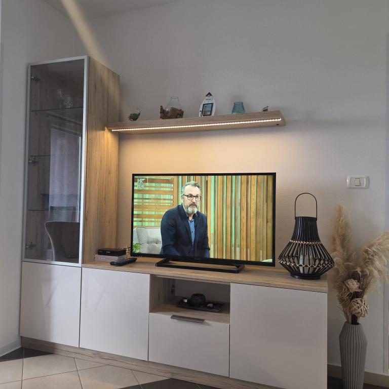Appartementen Mirella 4 bevinden zich in de nieuw gebouwde residentie Lavender met uitzicht op zee en een prachtig uitzicht op de zonsondergang. Naar de zee en het prachtige zandstrand is het slechts 150 meter. Winkels, bakker en restaurants op 200m. Naar het centrum van Umag 3 km. Langs de zee is er een promenade helemaal naar het centrum van Umag en de mogelijkheid is vervoer per toeristentreintje. De appartementen zijn voorzien van airconditioning en volledig uitgerust met alle apparatuur. Badkamer met massagedouche, wasmachine, haardroger, strijkijzer. Keuken met vaatwasser, magnetron, koffiezetapparaat, waterkoker grote koelkast met vriezer en al het andere om de gast zich thuis te laten voelen. Gratis internet en beveiligde parkeergelegenheid zijn beschikbaar. De prijs is inclusief gebruik van het zwembad, ligstoelen, douche, tweezitter, tafel en stoelen op het overdekte gedeelte van het terras bij het zwembad. Dank u voor het kiezen van Apartments Mirella, ik hoop dat wij als tegenprestatie aan uw wensen zullen voldoen tijdens uw verblijf in onze appartementen. Ons doel is uw tevredenheid en aanbeveling. Beste gasten, welkom bij Apartments Mirella!