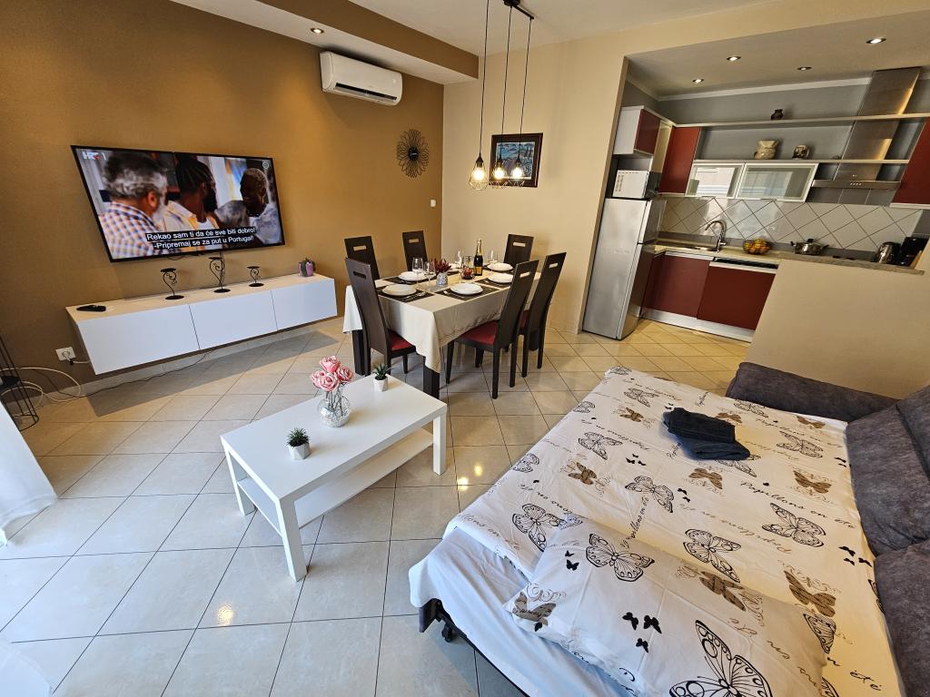 Uitstekende accommodatie. Er waren 9 ouders in 3 appartementen dragen allemaal alleen goede herinneringen aan accommodatie en uitzonderlijke gastvrijheid Ms. Vedrana en haar man, zeer aardige mensen. Wat je ook geïnteresseerd ze helpen verklaren de instructies bent. Alle andere faciliteiten zijn in de nabijheid van de woning op zee, zaal, tennisbanen, winkels. De appartementen zijn zeer netjes, schoon en uitgerust. Elke adviseren appartementen Vedrana !!!