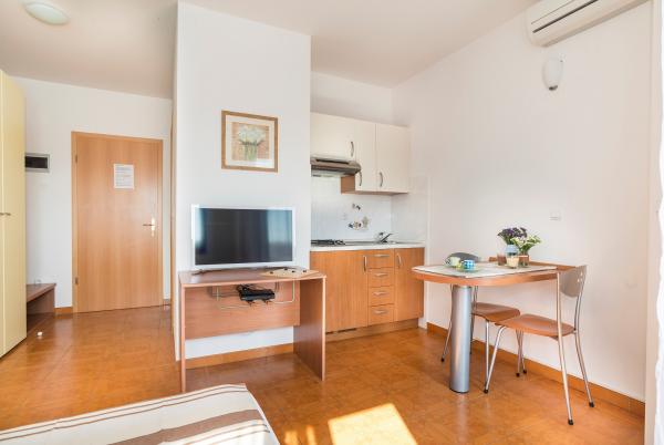Apartments Villa Vienna ligt in Zambratija, een rustig vissersdorpje, op slechts 300 meter van het dichtstbijzijnde zandstrand en op 3 km van het centrum van Umag. Het huis ligt aan het einde van een rustige straat met bijna geen autoverkeer en is omgeven door bossen, wijngaarden en olijfboomgaarden. In de buurt kunt u lokale seizoensgebonden groenten en fruit kopen, evenals zelfgemaakte olijfolie. In de buurt van het huis zijn enkele van de vele sportfaciliteiten (beachvolleybal, tennisbanen, paardrijden, fietspaden, paragliden, duiken enz.). Eendaagse excursies per boot van Umag naar de beroemde Italiaanse stad Venetië zijn ook de favoriete voorzieningen bij de gasten. De van airconditioning voorziene en mooi ingerichte appartementen beloven een uitstekende vakantie in een aangename sfeer! Accommodatie-eenheden A4 2, Studio 1 (a) en A3 bevinden zich op de begane grond, terwijl Studio, Studio 1 (b) en A4 1 zich op de eerste verdieping bevinden. WiFi en parkeren in de tuin zijn gratis!