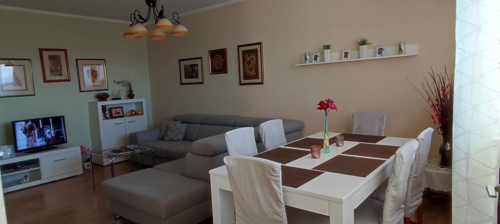 Welkom in het appartement "Florem", gelegen nabij het ValMod-centrum, aan de R. Boškovića-straat 20, in een gebouw met lift. Ons appartement van 60 m2 met airconditioning bestaat uit een onlangs gerenoveerde keuken uitgerust met alle benodigde apparatuur en serviesgoed, een bijkeuken, een ruime woonkamer, een badkamer met ligbad en wasmachine, en een slaapkamer met een tweepersoonsbed en een stapelbed. bed. De hoekbank in de woonkamer kan tevens worden uitgebouwd tot bed. Aan de voorzijde van het gebouw is er gratis parkeergelegenheid en een kinderspeelplaats omgeven door groen. In de directe omgeving bevinden zich diverse winkels, een bank, een tankstation, een café, een kerk... U wandelt zo naar het stadscentrum of de boulevard aan de Drava, waar u in de zomermaanden kunt genieten van de zwembaden. Ontspan na het uitgaan met een tv, gratis WiFi en wat boeken, speelgoed en bordspellen of met uitzicht op de zonsondergang. Het balkon biedt uitzicht op de daken van het oude stadscentrum, maar ook op het groen van het Drava-woud, Ivanščica en Ravna Gora. Wij wensen u een aangenaam verblijf.
