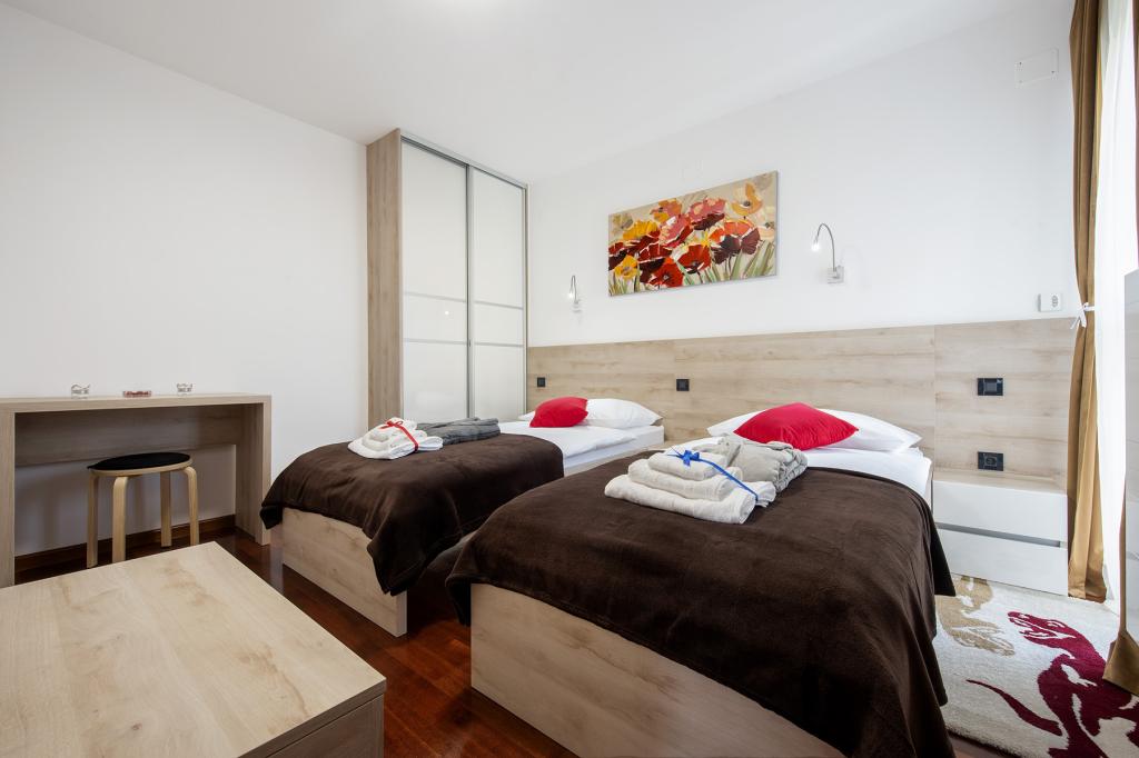 Ratkajec Luxury Apartments zijn perfect voor familie, zakenpartners, sporters of individuen vanwege de faciliteiten die het biedt. Deze moderne appartementen bevinden zich in Varaždin, op ongeveer 1,7 km van het stadscentrum. Er is een omheind parkeerterrein naast het gebouw, dat onder videobewaking staat. Het appartement is voorzien van airconditioning en uitgerust met centrale verwarming en een vaatwasser en wasmachine, het is geschikt voor maximaal 6 personen. Het appartement heeft twee slaapkamers, een met een tweepersoonsbed en de andere met 2 eenpersoonsbedden + extra bed in de woonkamer. De prijs van het appartement is inclusief een wellnessruimte met een hydromassagebad, sauna, ligstoelen en fitnessapparatuur. Ook andere voorzieningen zoals een bokszak, darts en tafelvoetbal zijn inbegrepen. In de omgeving van het appartement bevinden zich winkels, cafés, restaurants met een divers gastronomisch aanbod van traditionele gerechten en dranken, en vele culturele bezienswaardigheden.