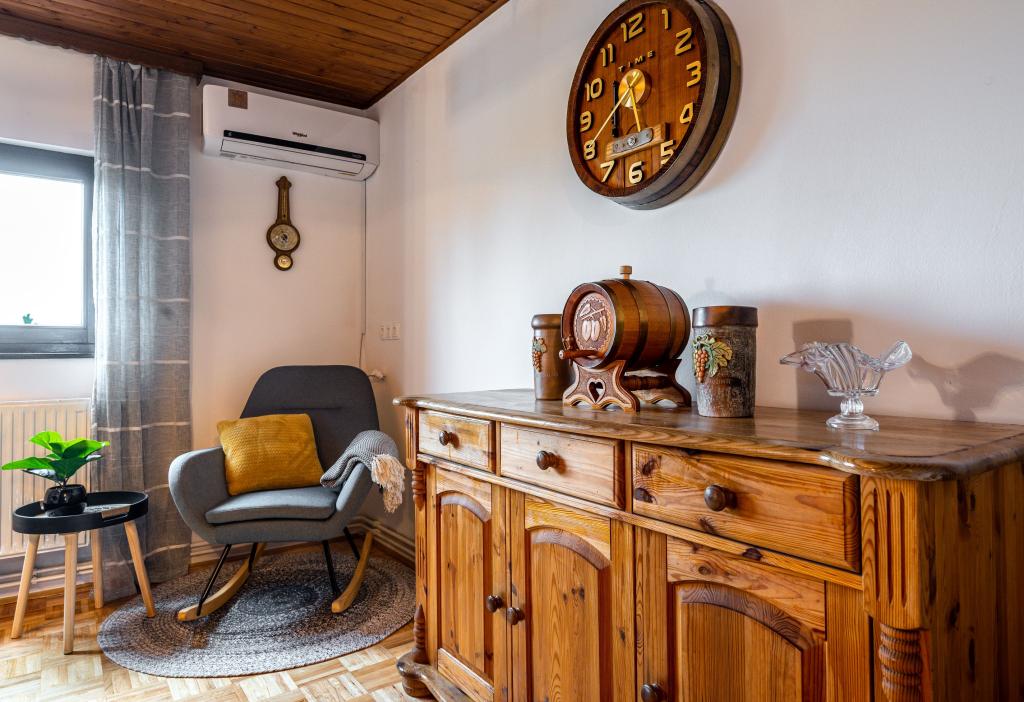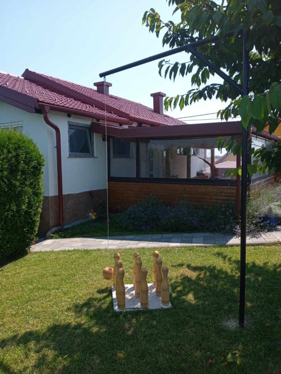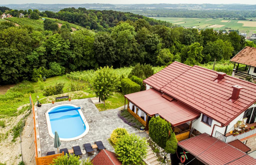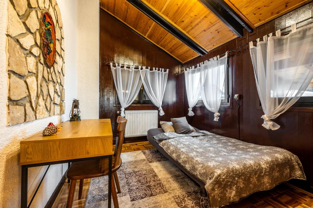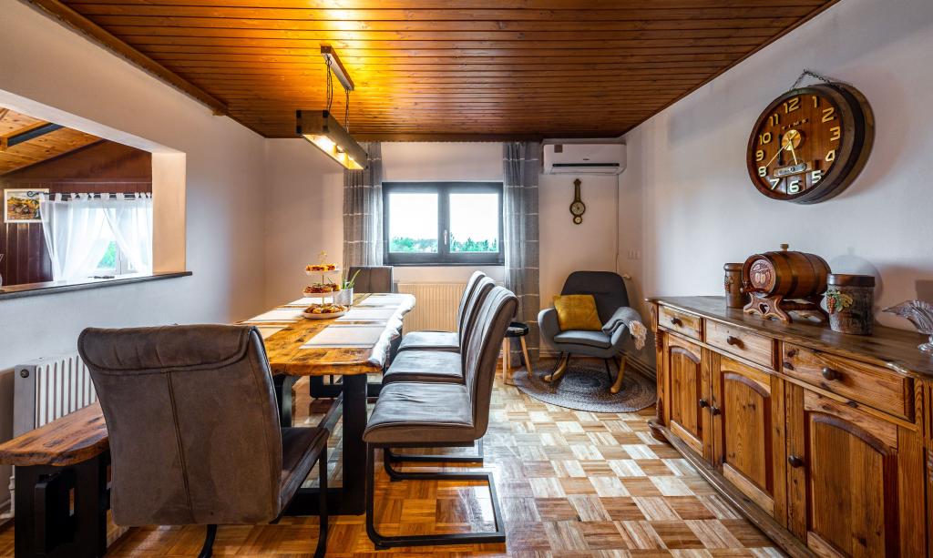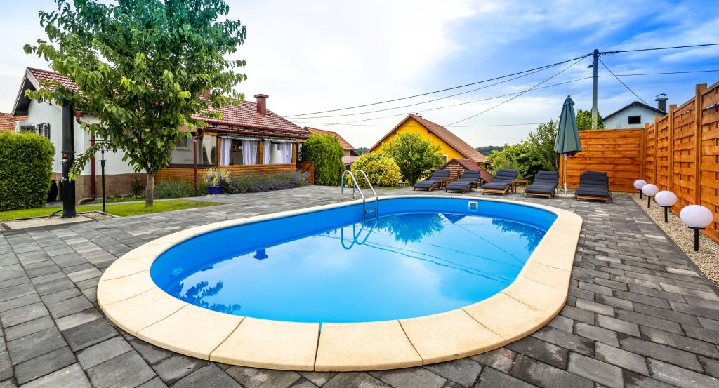 Het vakantiehuis "Nihil deest" is gelegen in Falinić Breg, gemeente Cestica, 20 km van Varaždin en 6 km van de grensovergang Dubrava Križovljanska. Het huis biedt een volledig uitgeruste keuken, badkamer met ligbad, douche en toilet, apart toilet, eetkamer, woonkamer en 2 slaapkamers met een tweepersoonsbed en 1 kamer met een eenpersoonsbed. Het huis heeft een terras met een zwembad met hydromassage en houten tuinmeubelen, een barbecue en een buitendouche op zonne-energie. Het huis is geschikt voor families met kinderen. De tuin van het huis is omheind. Op het erf is er een houten klimrek voor kinderen, een minigym, een hangende bowlingbaan en een badmintonset. Van juni tot eind september is een buitenzwembad (afmetingen 7,5x3,5 m) met ligweide geopend.