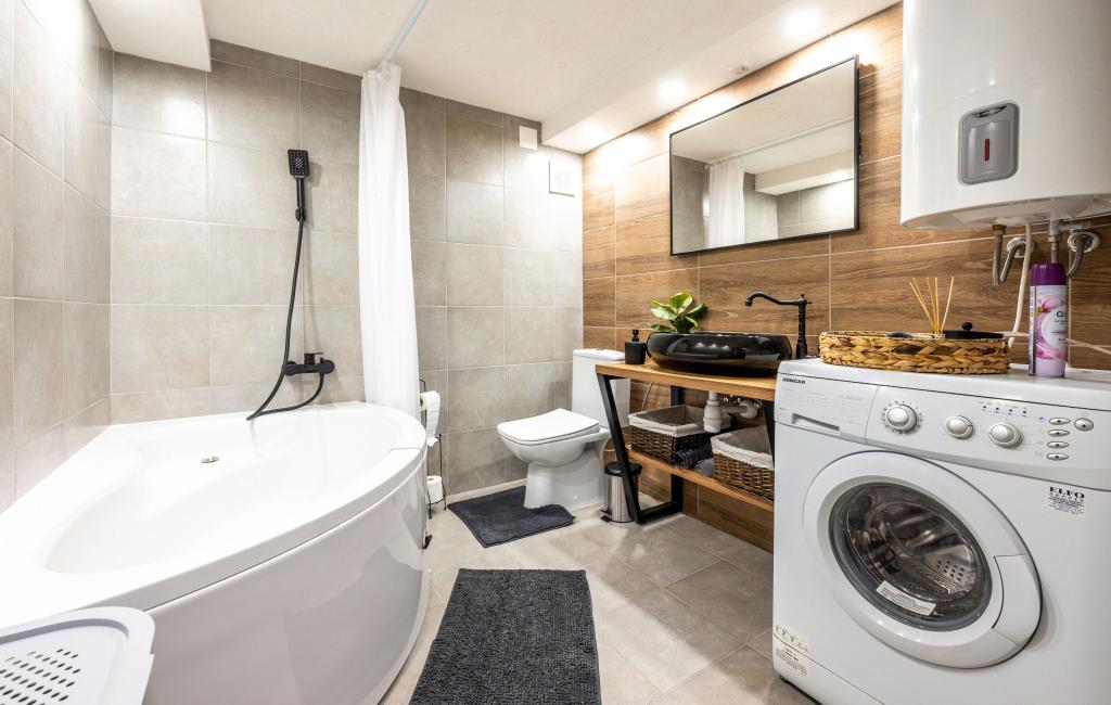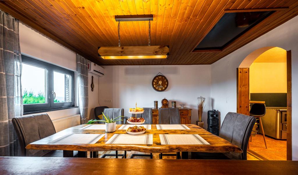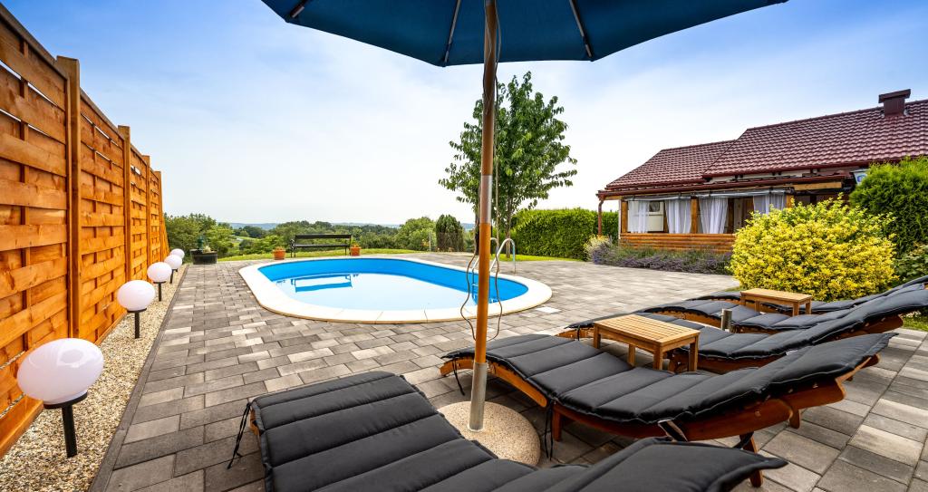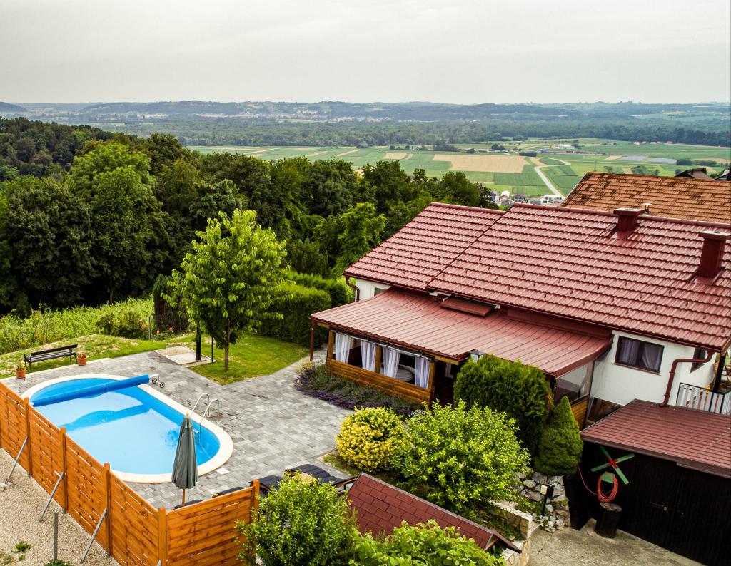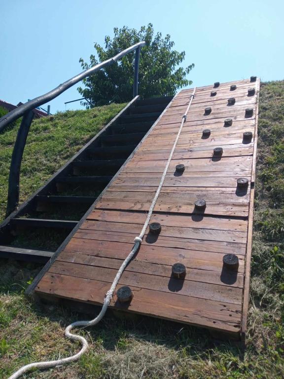 Het vakantiehuis "Nihil deest" is gelegen in Falinić Breg, gemeente Cestica, 20 km van Varaždin en 6 km van de grensovergang Dubrava Križovljanska. Het huis biedt een volledig uitgeruste keuken, badkamer met ligbad, douche en toilet, apart toilet, eetkamer, woonkamer en 2 slaapkamers met een tweepersoonsbed en 1 kamer met een eenpersoonsbed. Het huis heeft een terras met een zwembad met hydromassage en houten tuinmeubelen, een barbecue en een buitendouche op zonne-energie. Het huis is geschikt voor families met kinderen. De tuin van het huis is omheind. Op het erf is er een houten klimrek voor kinderen, een minigym, een hangende bowlingbaan en een badmintonset. Van juni tot eind september is een buitenzwembad (afmetingen 7,5x3,5 m) met ligweide geopend.