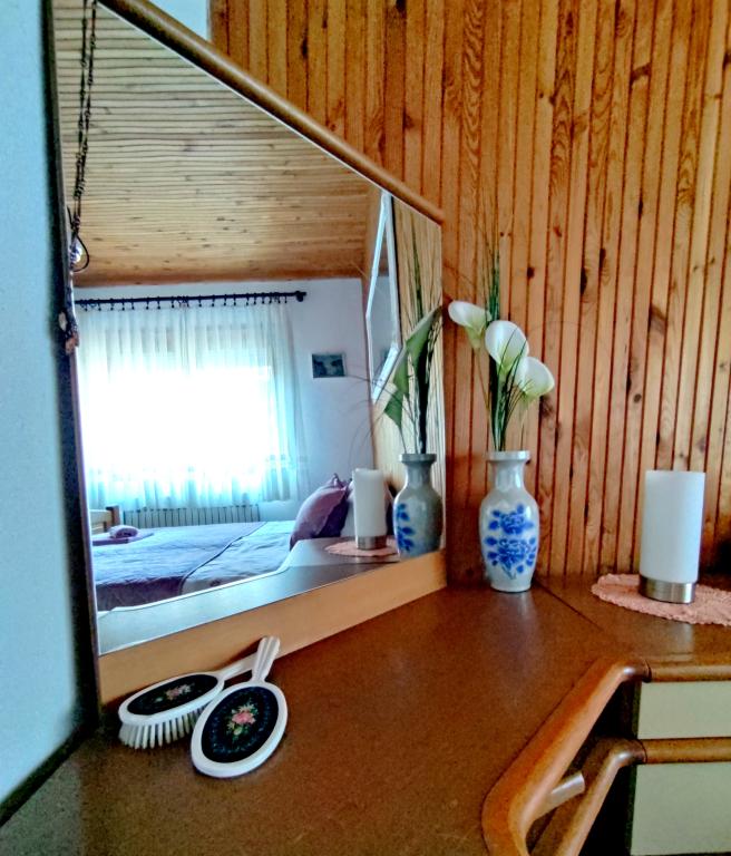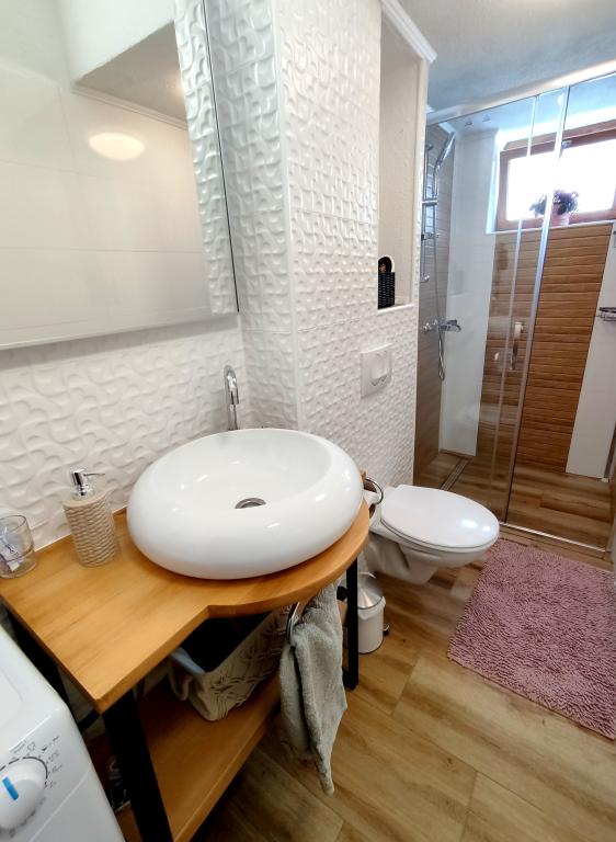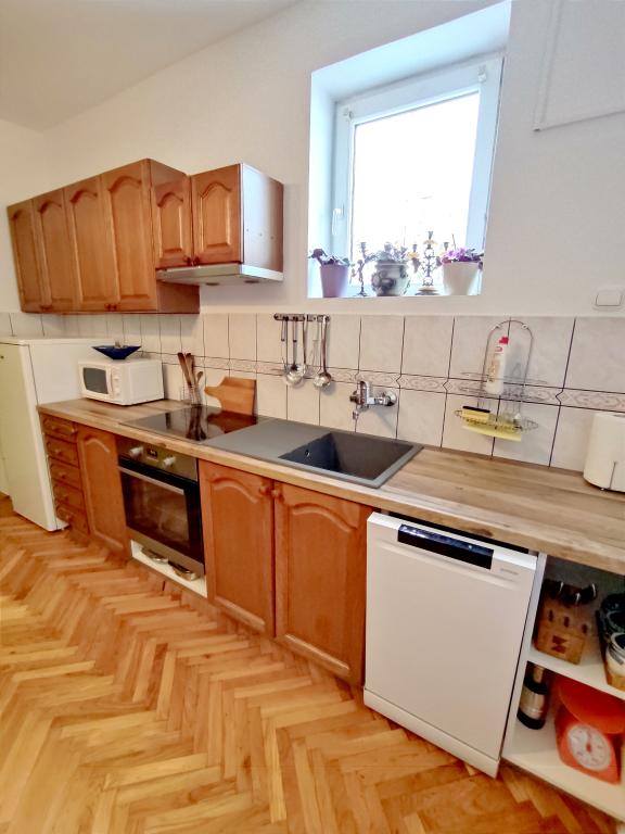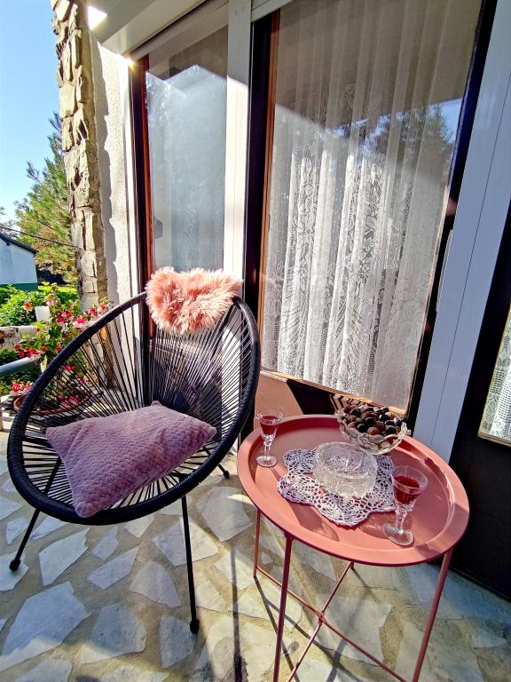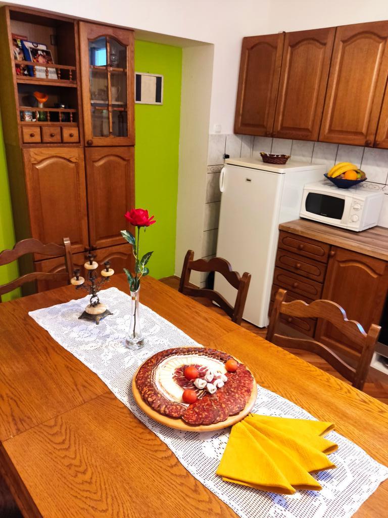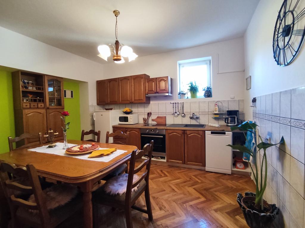 Appartement ingericht in Slavische stijl, gemoderniseerd, functioneel, omgeven door bomen en beekjes in het dorp Velika podno Papuka. De keuken is voorzien van apparatuur en serviesgoed voor het bereiden en serveren van eten. In de slaapkamer staat een groot handgemaakt eikenhouten tweepersoonsbed, evenals een dubbele kledingkast, een nachtkastje en een make-uptafel met spiegel. In de ruime woonkamer staat een leren driezit en tweezit en een smart tv met toegang tot het terras met tuinmeubelen. De badkamer is voorzien van vloerverwarming, een douche en een wasmachine. Tot uw beschikking staat een tuin met een overkapping en een grote tafel met banken, een barbecue, een kinderspeelplaats en een trampoline. Achter het gebouw is een beekje waar je op warme dagen kunt vissen of je kunt verfrissen. Het appartement is gelegen nabij het natuurpark, adrenalinepark, aquapark, bos en wijngaard. Het is 300 meter van het restaurant, 1000 meter van de winkel en het tankstation.