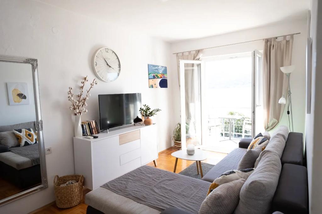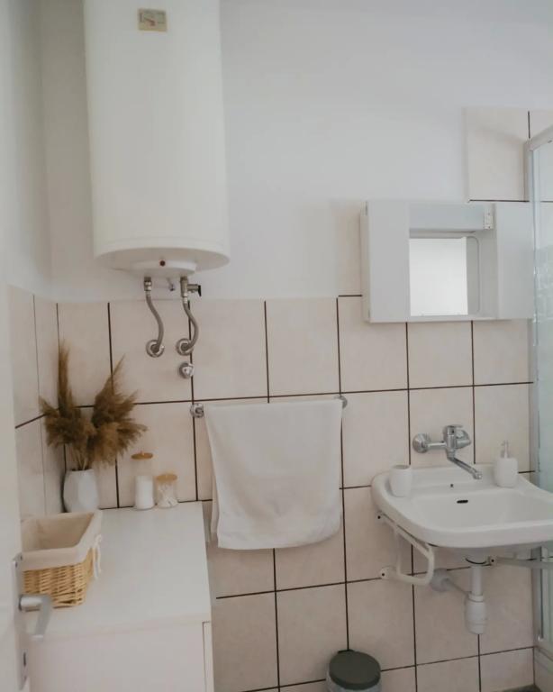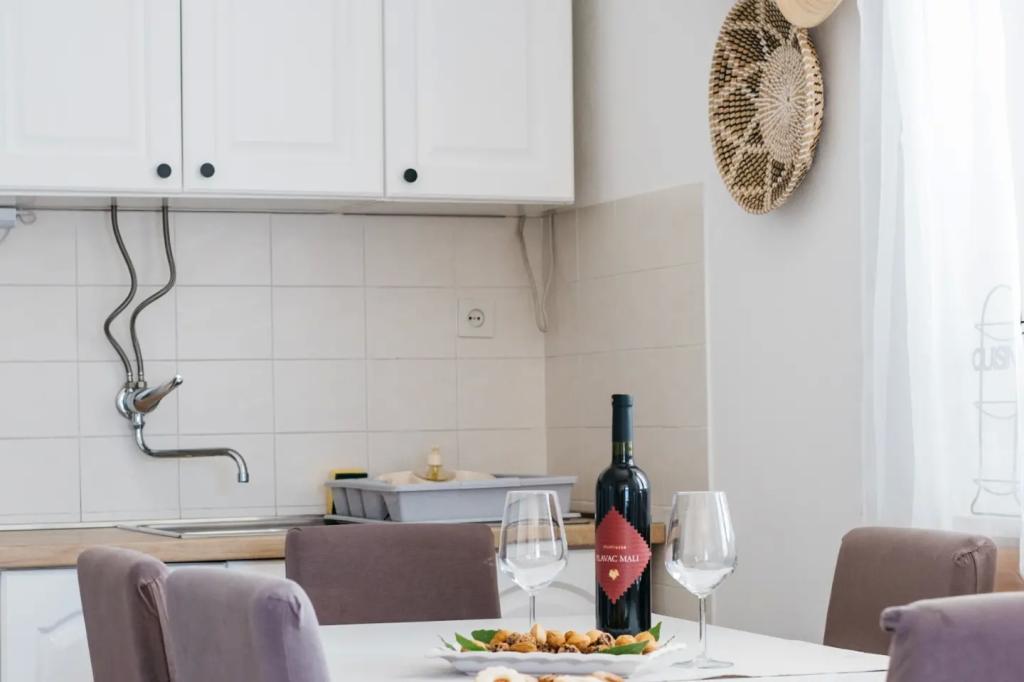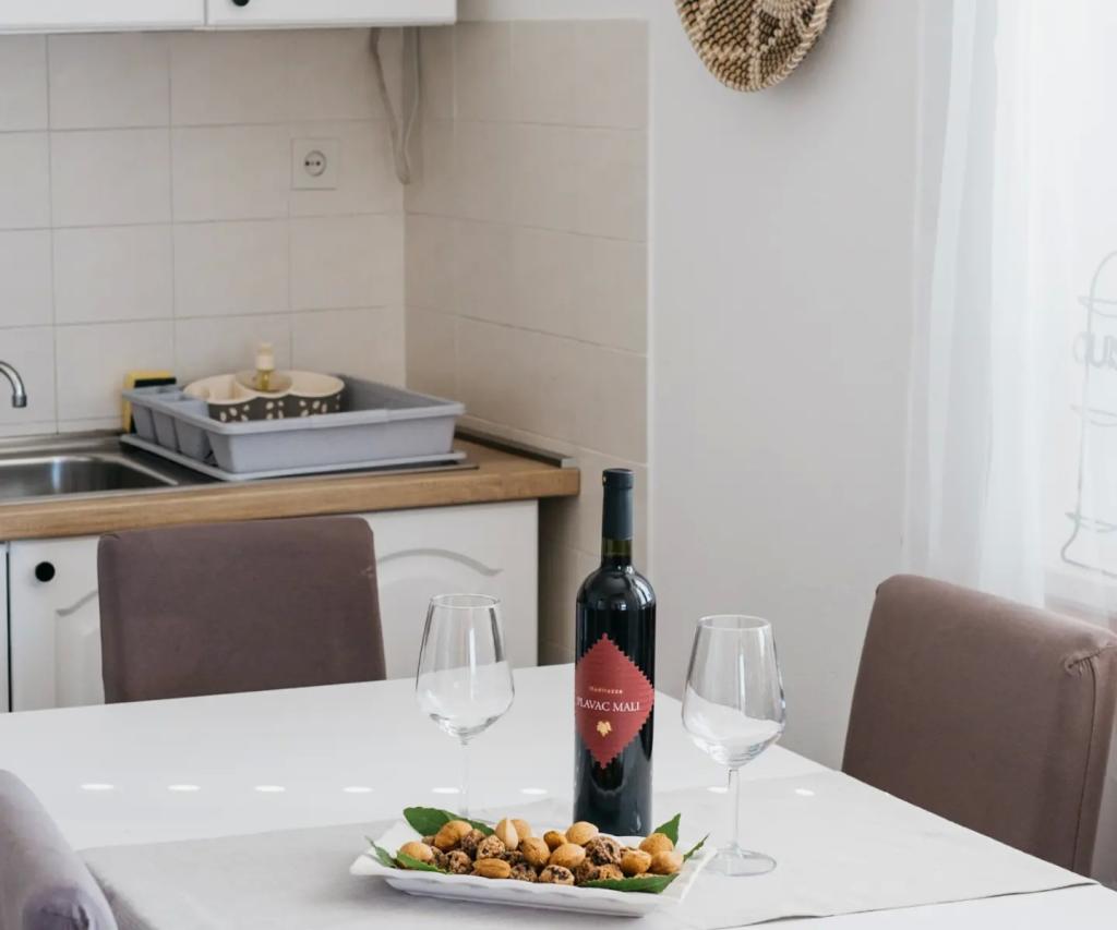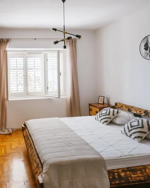 Het appartement is gelegen op de vloer van het huis, die is gelegen dicht bij de zee. De afstand van het centrum van de stad op slechts een paar minuten lopen waar sprake is van een winkel en ATM. Het appartement heeft een keuken, vier slaapkamers en twee badkamers. Ideaal voor grote familie of een groep vrienden. Aan de voorzijde van het huis is een terras met een grote houten tafel, grill en swing. Er is ook een balkon met uitzicht op de zee bij het verlaten van twee kamers. Onmiddellijk in de voorkant van het huis zijn er twee (het kiezel) strand en een ligplaats voor de boot. De prijs is inclusief, gebruik van internet en een parkeerplaats. Wij hopen uw gastheren!