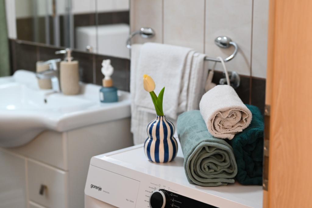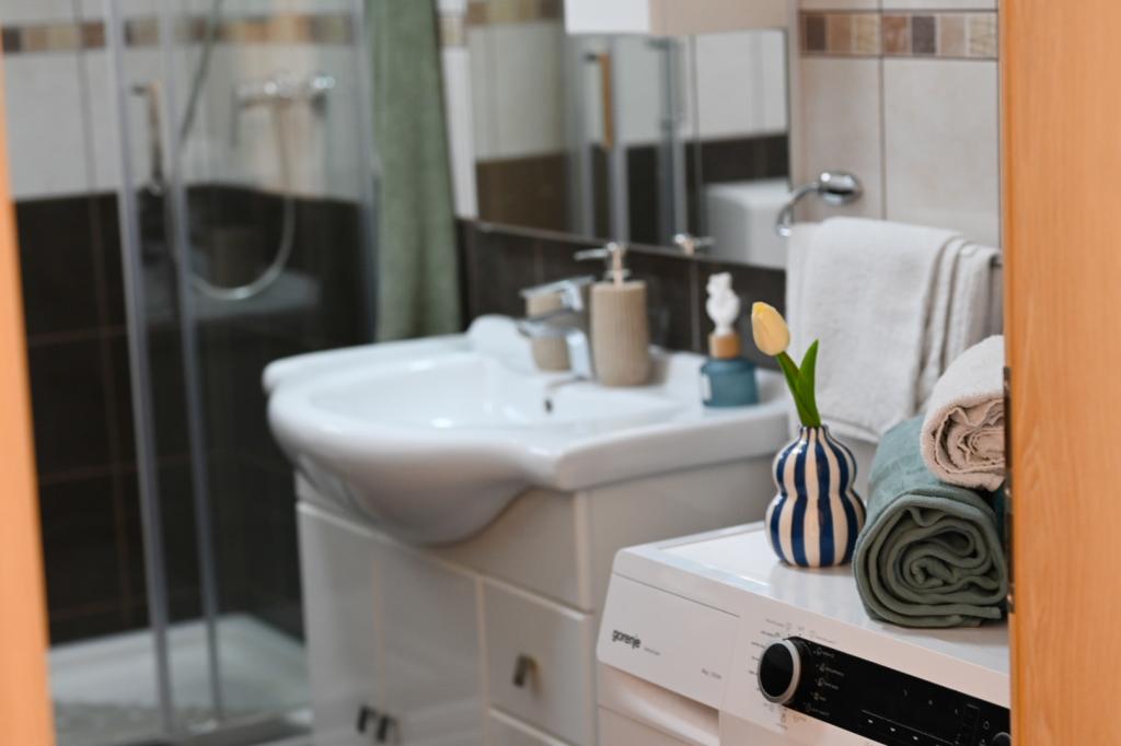 De prijs is inclusief een welkomstdrankje, evenals de mogelijkheid om een SUP te huren. In Vinišće zelf is het mogelijk om een boot te huren en verborgen zandstranden te ontdekken. Trogir, een stad onder bescherming van UNESCO, ligt vlakbij de stad, ongeveer 20 kilometer verderop. Op uw verzoek kunnen wij nabijgelegen dorpen en steden aanbevelen die leuk zijn voor sightseeing (Primošten, Rogoznica, Nationaal Park Krka). Vinišće biedt ook verschillende fietspaden, bergpaden en verkenningsgebieden. Het is mogelijk om te gaan vissen en duiken met de gastheren. Het appartement is zeer goed en modern uitgerust, vooral de keuken, die van alle toebehoren is voorzien. In de woonkamer staat een grote smart-tv en er is de mogelijkheid om Netflix te kijken.