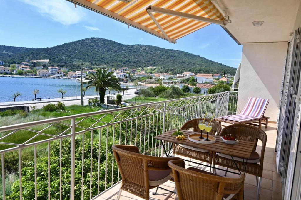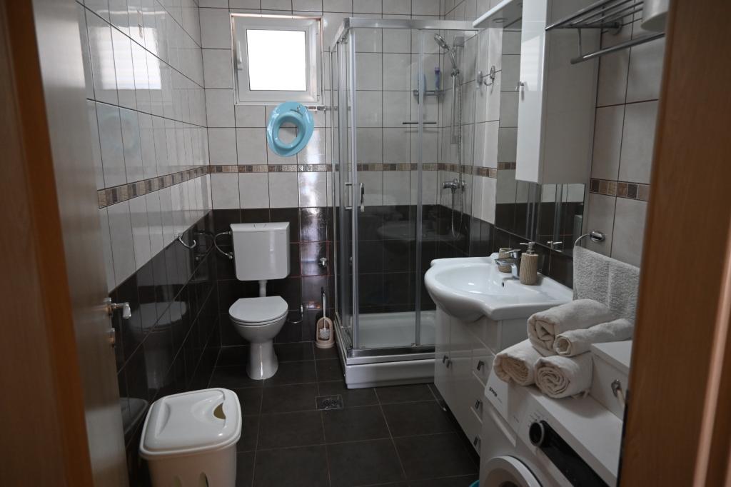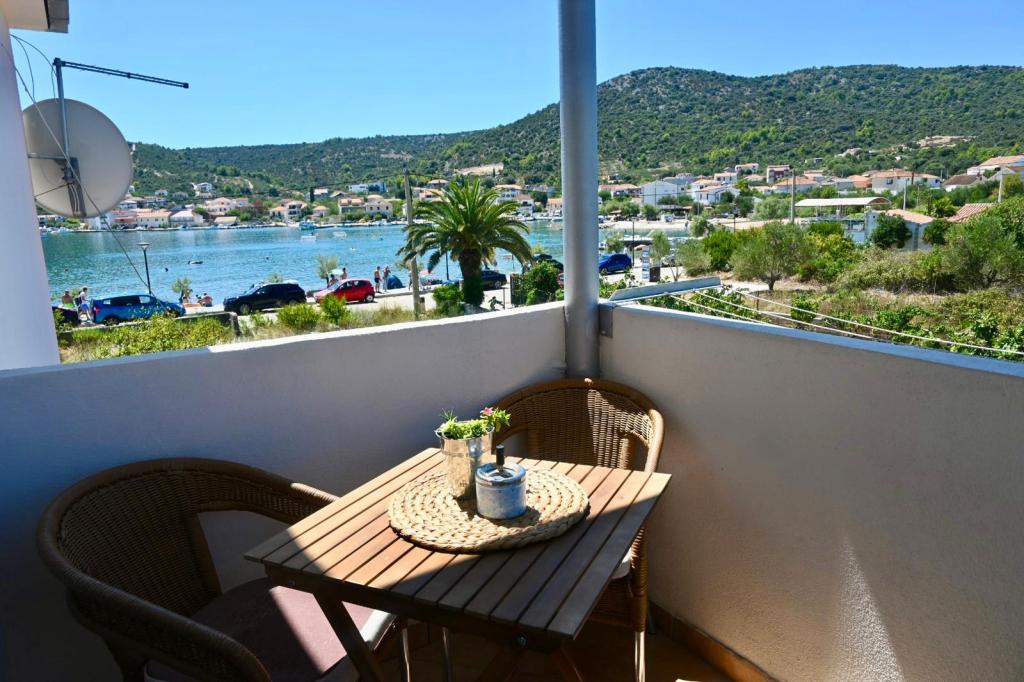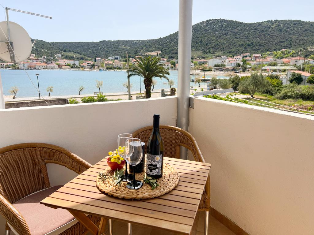 Appartement Leonora ligt direct aan het strand, op de eerste rij aan zee, in het centrum van een klein vissersdorpje. Het bevindt zich op de eerste verdieping van een gezinswoning met een grote tuin. Voor het huis ligt een goed onderhouden kiezelstrand dat ideaal is voor gezinnen met kinderen. Het appartement is voorzien van airconditioning, heeft een eigen parkeerplaats en de mogelijkheid om een grill en een zonnedouche aan de voorkant van het huis te gebruiken. Het bestaat uit twee slaapkamers, een grote woonkamer met een hoekbank die kan worden geopend en gebruikt om te slapen, een ruime keuken met eetkamer en een badkamer. Er is ook de mogelijkheid om op afspraak een extra bed en een kinderbedje te plaatsen. Aan de zuidkant is deze gericht op zee en is de prothese over de gehele lengte bedekt met een terras waardoor u kunt genieten van een prachtig uitzicht over de hele baai. Alle benodigde voorzieningen bevinden zich op maximaal 50 meter afstand van de woning (bakker, cafés, restaurants, toeristenbureau, pinautomaat). Het appartement wordt afhankelijk van de gasten voorbereid en we willen dat elke gast zich thuis voelt.