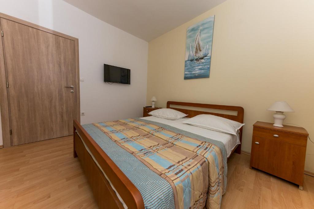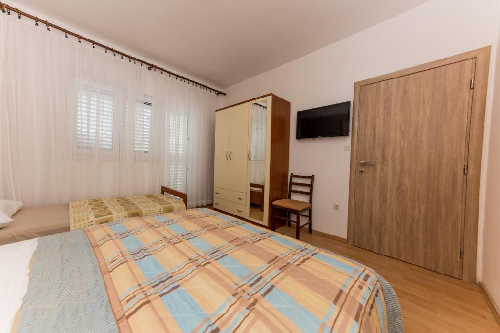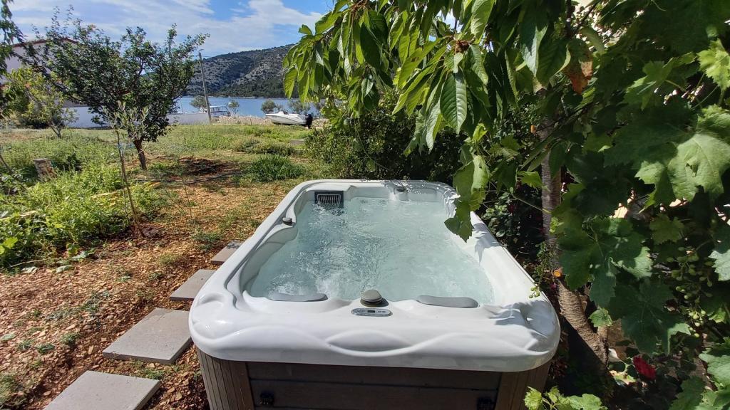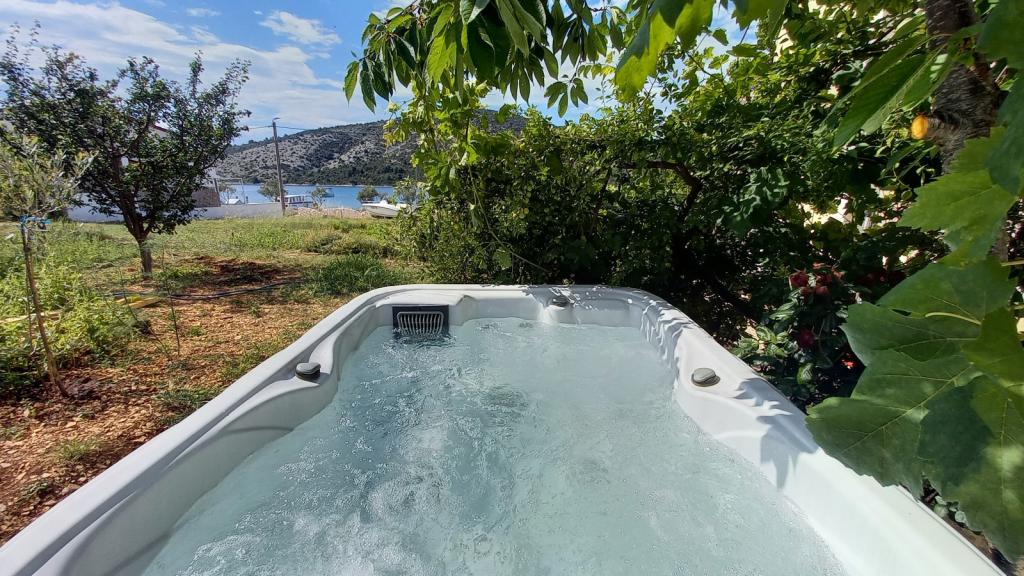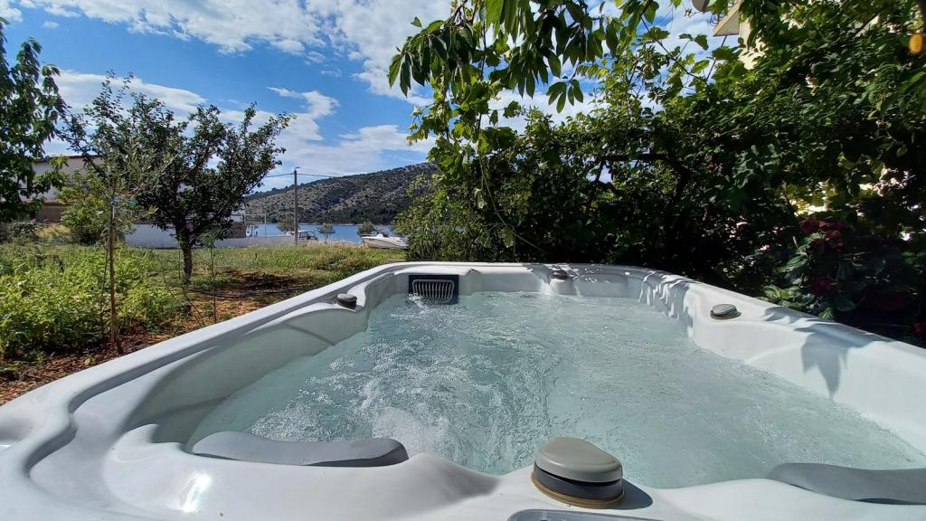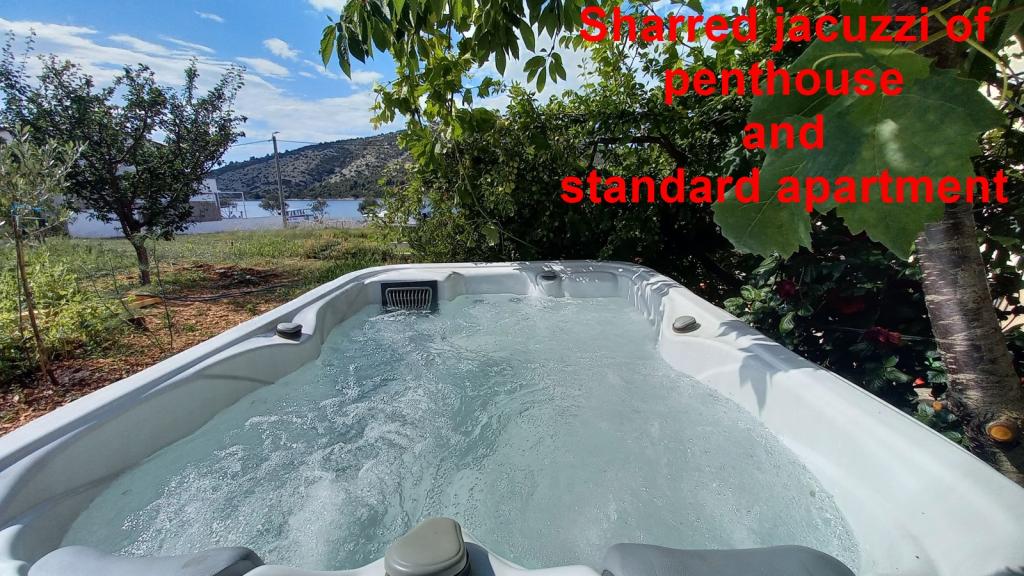 Apartments Mate ligt in Vinišće, 15 km ten westen van Trogir. Het huis ligt op 10 meter van de zee en het strand en heeft een grote parkeerplaats voor 8 auto's. Het huis heeft 5 appartementen: Appartement (6 2) Begane grond met jacuzzi: 3 slaapkamers, keuken met woonkamer, badkamer en lobby met jacuzzi. Appartement (7) Eerste verdieping met jacuzzi: 3 slaapkamers, keuken met woonkamer, 2 badkamers en groot terras met jacuzzi. Appartement (5 1) Penthouse: 2 slaapkamers, keuken met woonkamer, badkamer en groot balkon. Gedeelde jacuzzi. Appartement (4) Eerste verdieping met jacuzzi met: 2 slaapkamers, keuken, badkamer en groot terras met jacuzzi. Appartement (4) Tweede verdieping: 2 slaapkamers, keuken, badkamer en balkon. Gedeelde jacuzzi Een buitengrill is beschikbaar voor alle gasten. Gasten kunnen gebruikmaken van fietsen, een kajak en een supboard. Het huis is: - 10 meter van de zee en het strand - 100 meter van het restaurant - 150 meter van de winkel